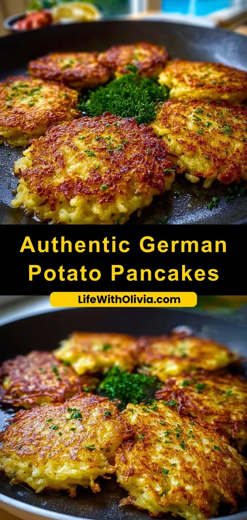 Crispy and golden on the outside, soft and savory on the inside—Authentic German Potato Pancakes (Kartoffelpuffer) are a classic comfort dish made with simple pantry staples. They’re perfect for breakfast, dinner sides, or snacks with sweet or savory toppings.