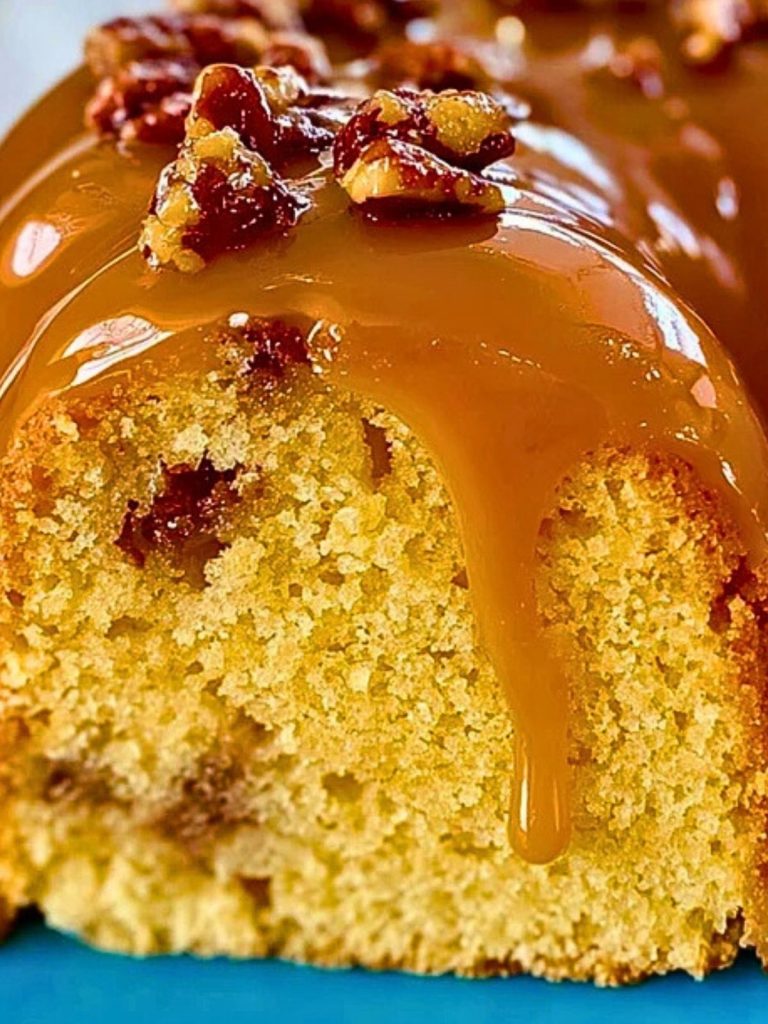 This cake shines at room temperature, allowing its buttery crumb and luscious caramel glaze to be fully appreciated. Serve it sliced thick with a hot cup of coffee or a scoop of vanilla bean ice cream for an indulgent twist.