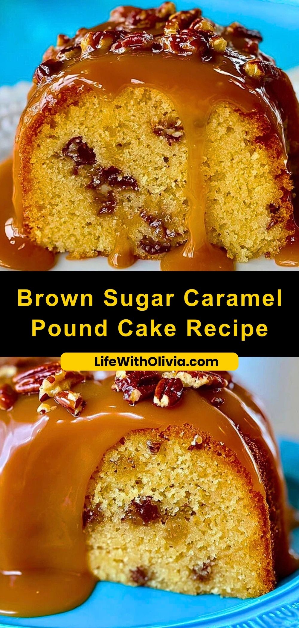 This Brown Sugar Caramel Pound Cake is the perfect blend of buttery richness, warm brown sugar, and a silky homemade caramel glaze. Topped with toasted pecans, this cake is indulgent and comforting—a must-bake for gatherings or weekend treats.