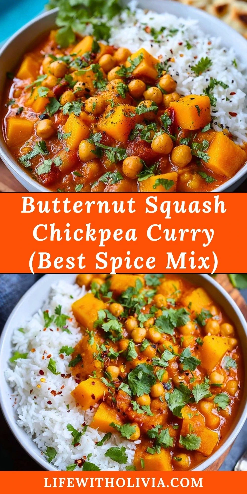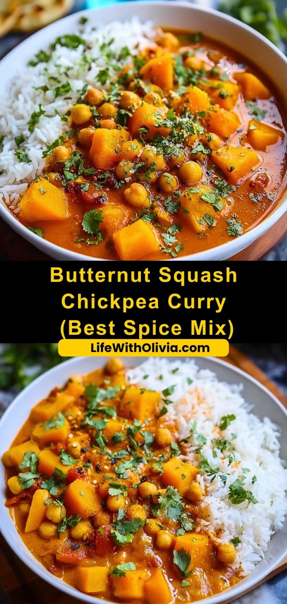 Keywords: easy curry, vegetarian dinner, butternut squash recipe, healthy curry, chickpea curry