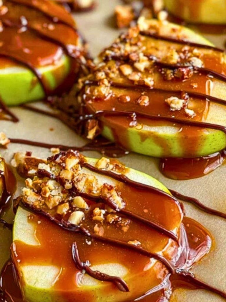 These Caramel Apple Slices are a fun, bite-sized twist on the traditional caramel apple. Crisp tart apples are topped with silky caramel, drizzled with rich chocolate, and sprinkled with crunchy nuts. Perfect for fall parties, snacks, or festive treats, they’re easy to customize and even easier to love.