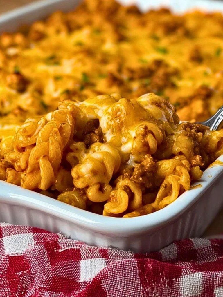 Keywords: Cheeseburger pasta, beef casserole, family dinner
