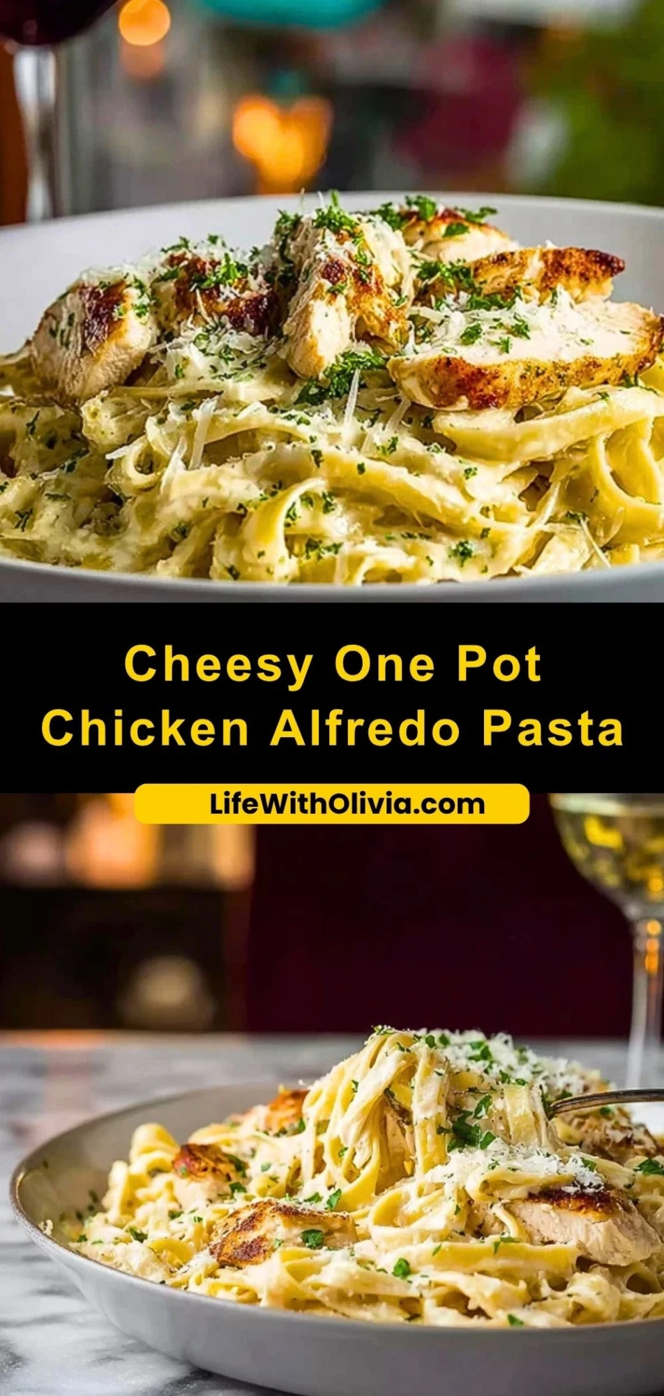 This Cheesy One Pot Chicken Alfredo Pasta is the ultimate easy dinner idea. It’s a quick one-pan meal packed with tender chicken, creamy Alfredo sauce, and perfectly cooked pasta—all in under 30 minutes. Ideal for busy weeknights, cozy dinners, or even meal prep. Whether you’re looking for a healthy-ish comfort meal or a kid-approved dinner recipe, this dish checks every box. Keywords: easy dinner, chicken pasta, one pot recipe, creamy Alfredo, quick meal, food ideas.
