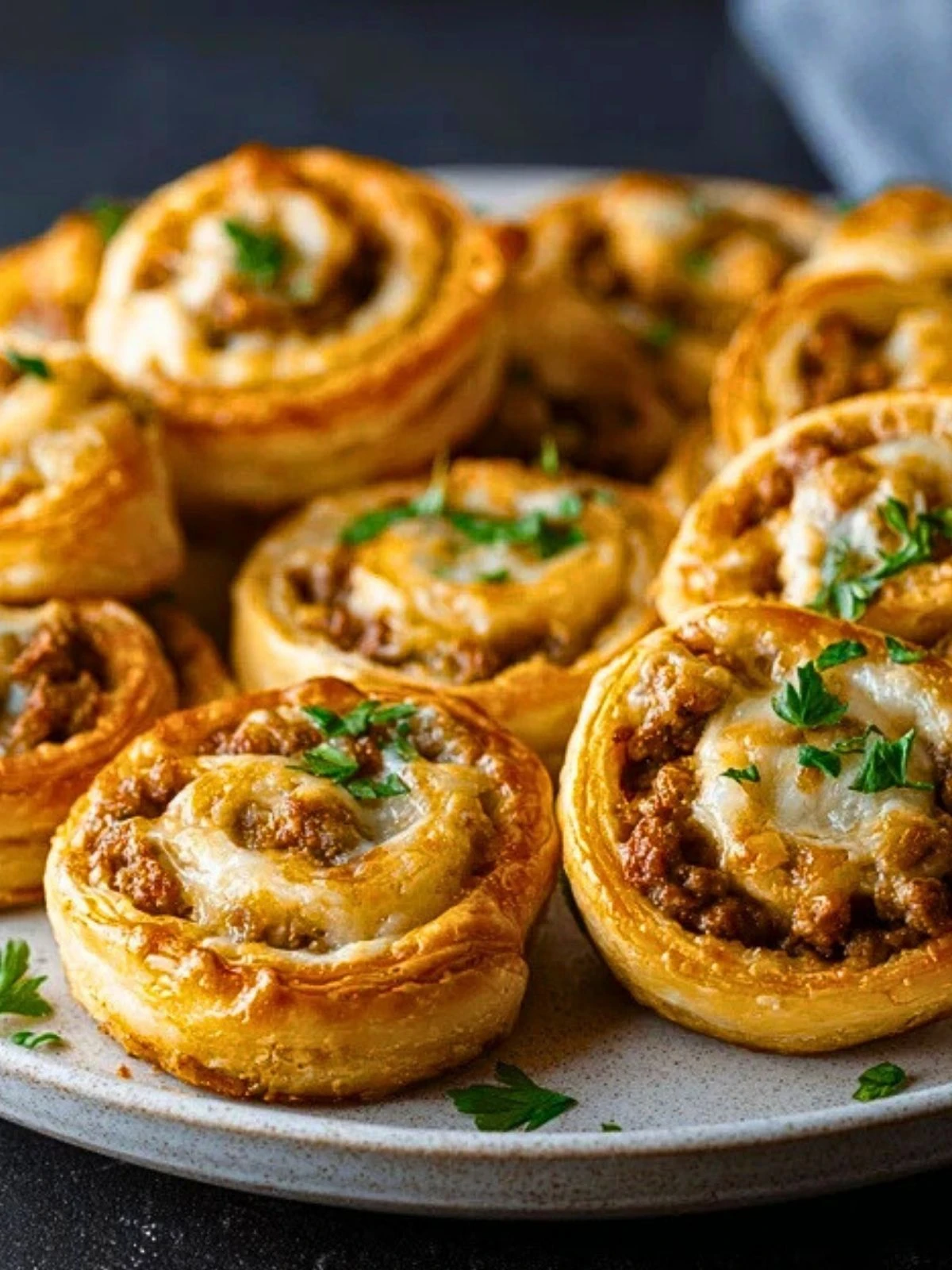 Golden, flaky pastry spiraled with savory sausage and melty cheese—these Cheesy Puff Pastry Sausage Pinwheels are a must-make for parties, brunches, or cozy nights in. With minimal ingredients and a rich, comforting flavor, they’re sure to become a go-to favorite.