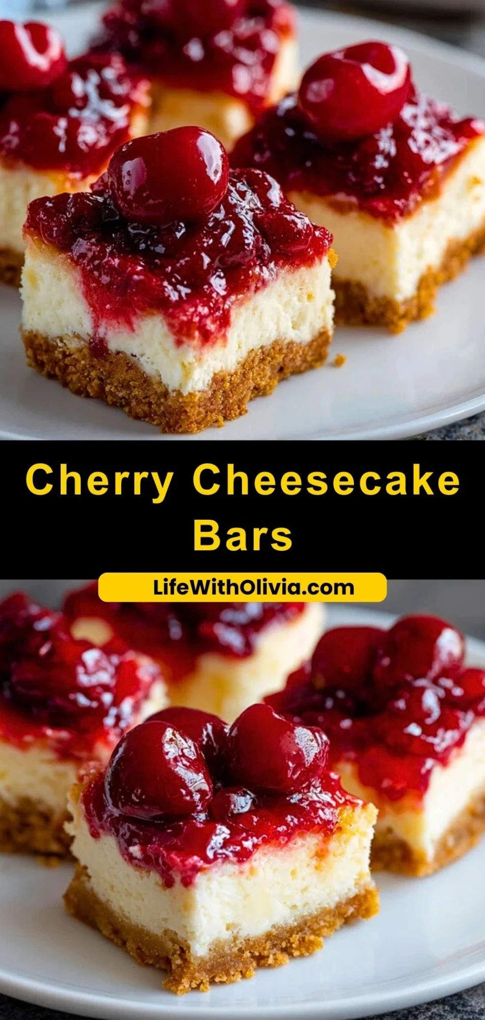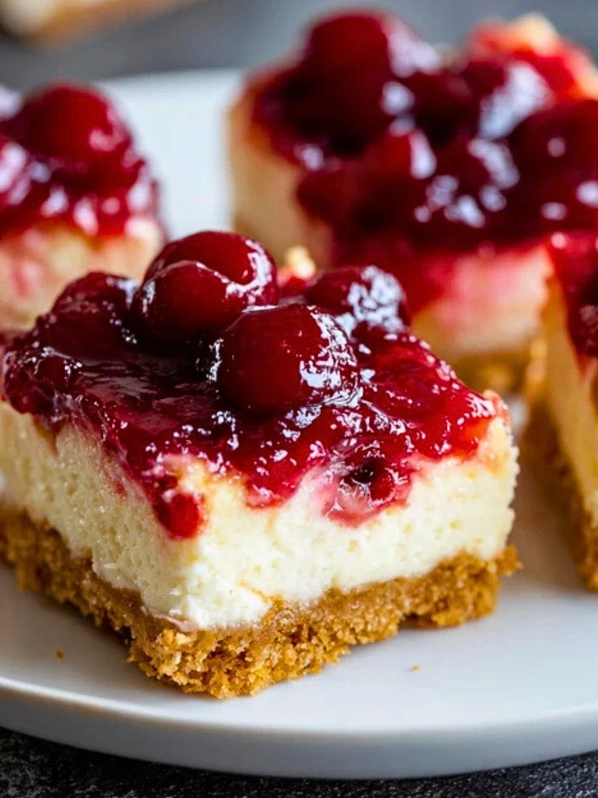 Cherry Cheesecake Bars combine a buttery graham cracker crust with creamy vanilla cheesecake and a sweet cherry topping. Perfect for parties, holiday trays, or a midweek treat, these bars offer all the richness of traditional cheesecake in a fun, sliceable format.