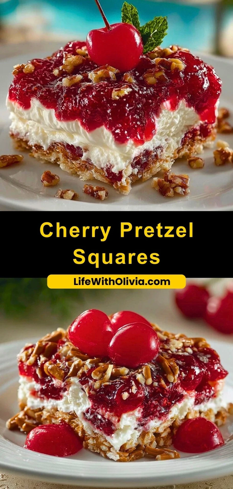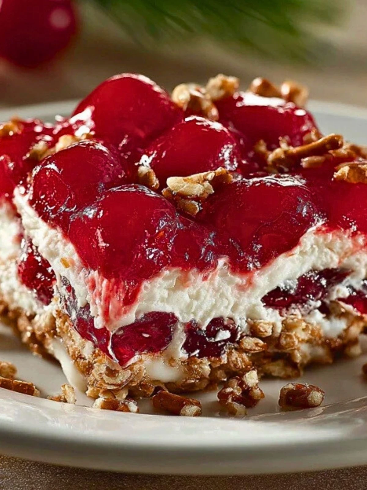 Perfect for holidays, potlucks, or just when your sweet tooth demands something extraordinary, this dessert has an old-school charm with a modern flair. The best part? It’s surprisingly simple to make and keeps well in the fridge, so it’s ideal for prepping ahead when entertaining. With its ruby red cherry topping and golden pretzel crunch, this dish is as gorgeous as it is delicious.