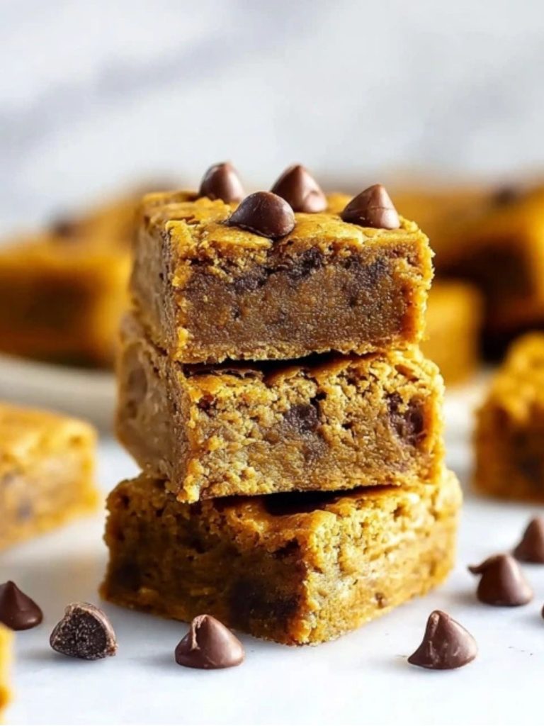 These chewy pumpkin blondies are the ultimate fall treat—packed with warm spices, real pumpkin puree, and rich brown sugar. Finished with gooey chocolate chips, they’re dense, soft, and irresistibly flavorful. Whether you’re baking for a cozy night in or a festive gathering, these bars hit the sweet spot between cookie and cake.