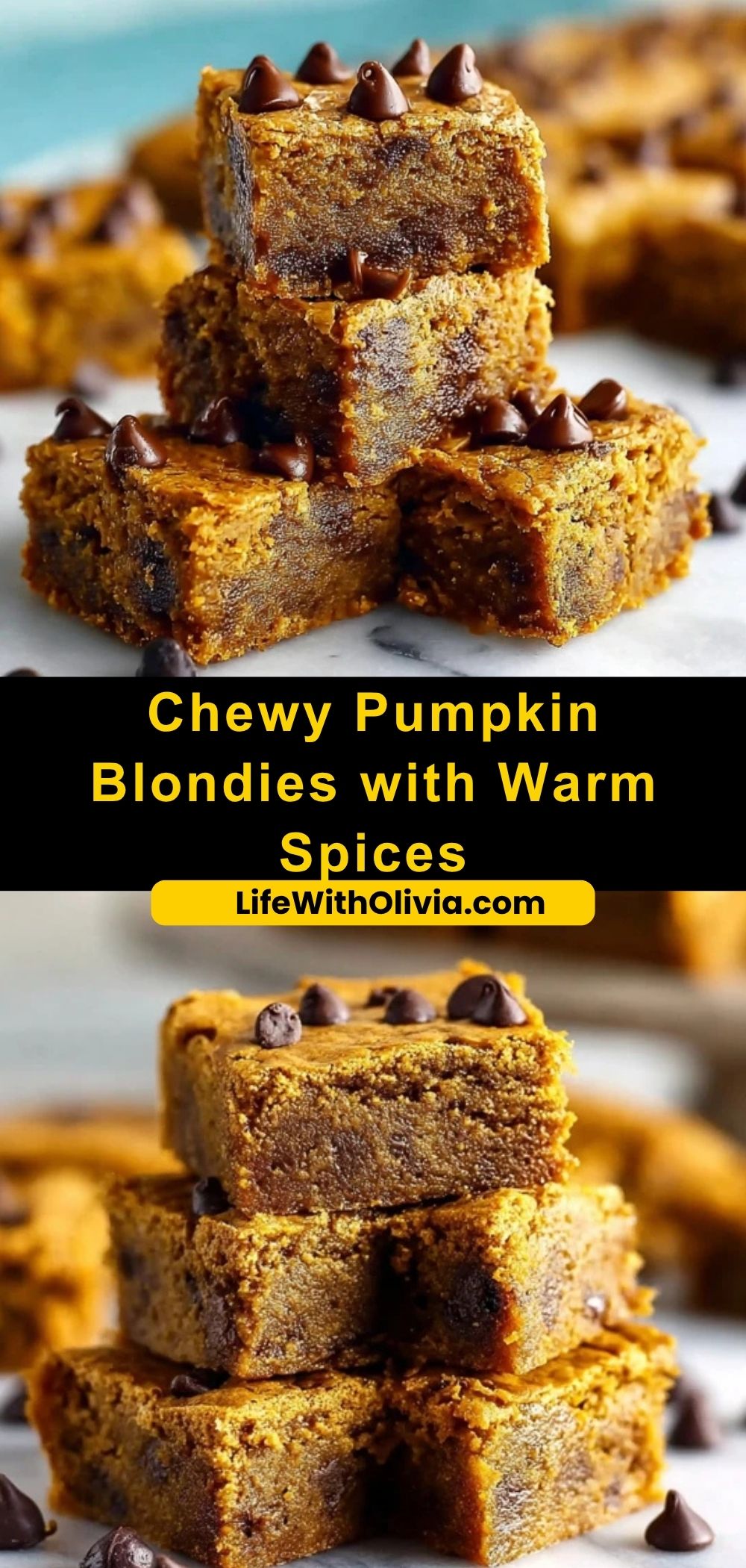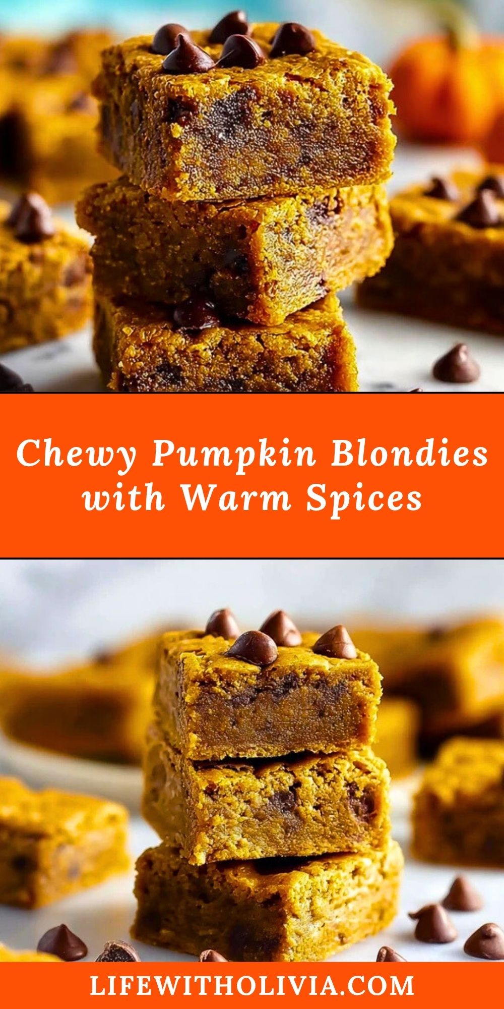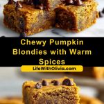 Keywords: Pumpkin blondies, chewy blondies, fall desserts