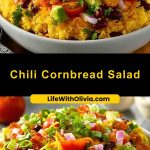 Chili Cornbread Salad is best served slightly chilled or at room temperature, making it perfect for make-ahead events. Serve it in a large bowl for gatherings or scoop individual portions into mason jars for a fun, portable presentation.