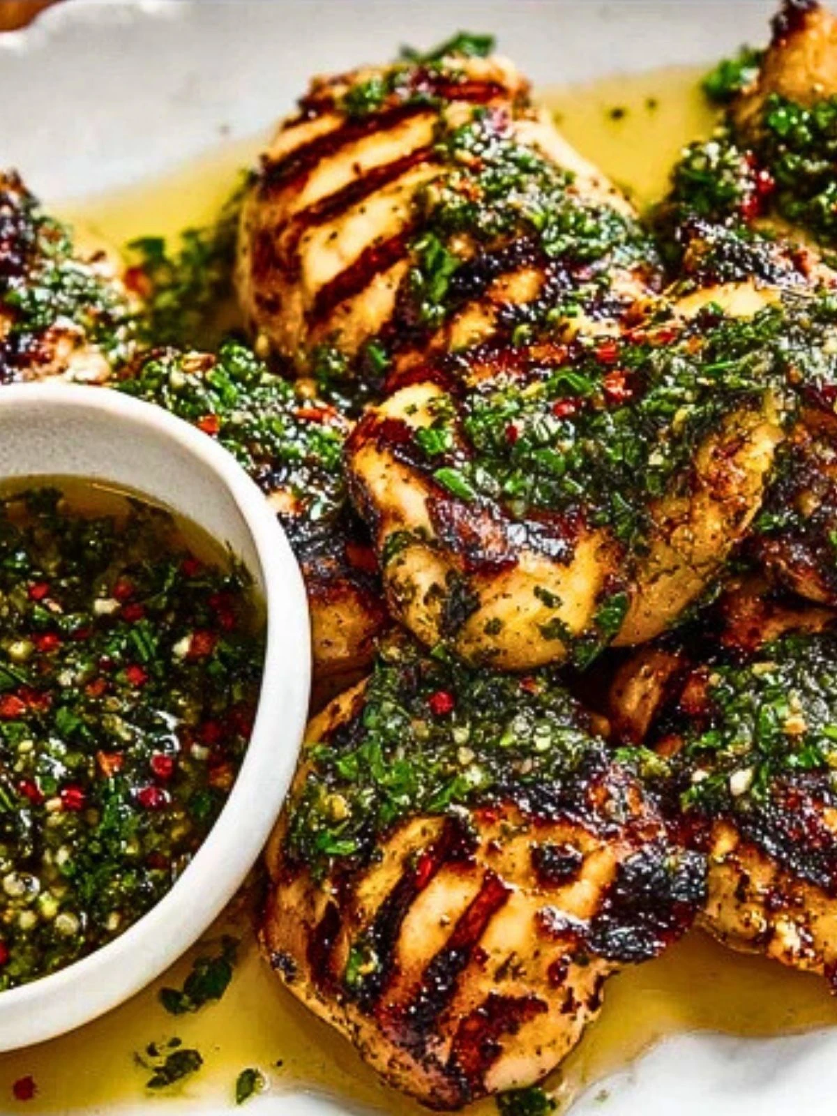 Chimichurri Chicken is a vibrant, herb-loaded grilled dish that delivers smoky flavor with a tangy kick. Juicy chicken thighs are marinated and grilled to perfection, then topped with a bold chimichurri sauce that brings every bite to life. It’s perfect for cookouts, busy weeknights, or as a protein-packed meal prep.