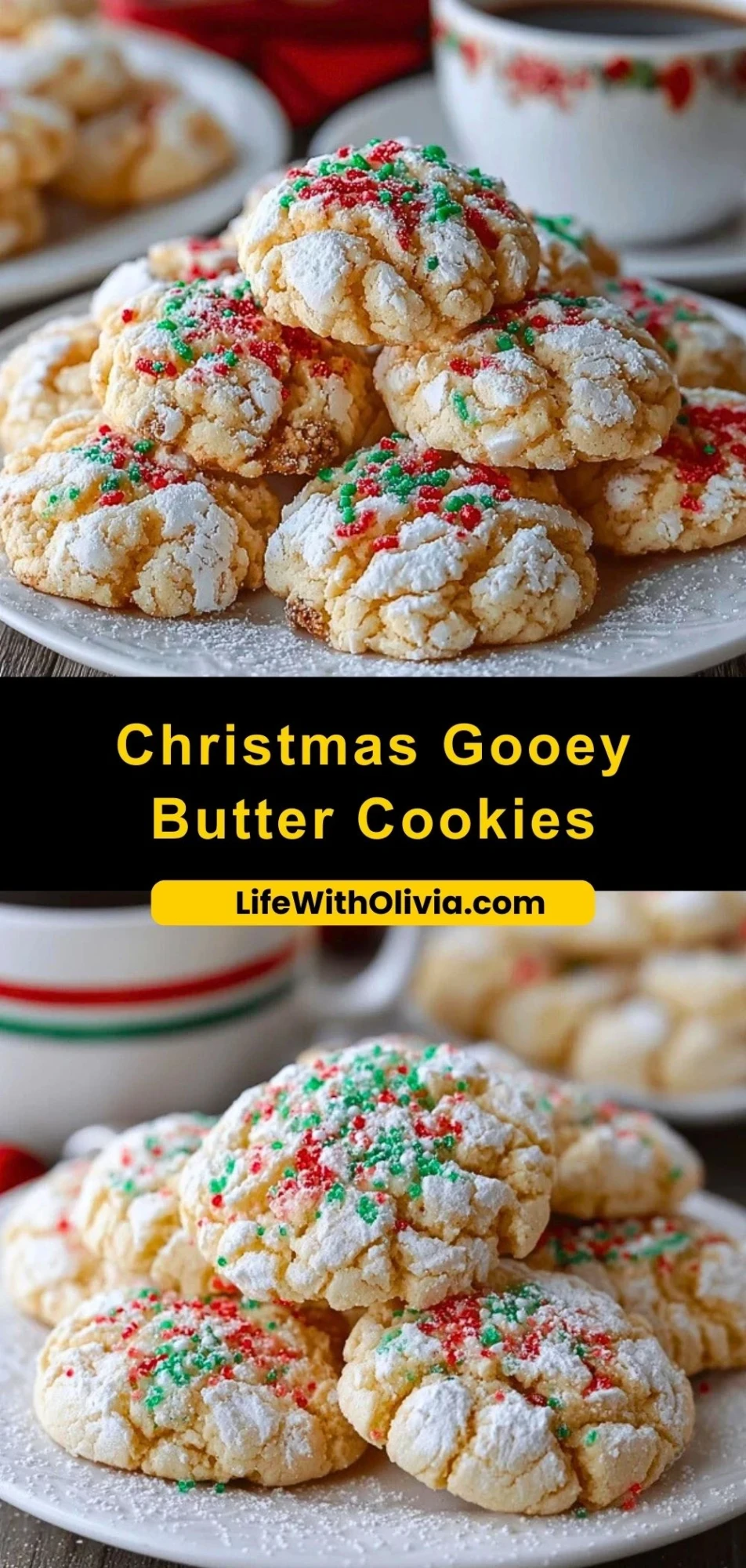 Nothing quite captures the magic of the holiday season like a plate full of soft, pillowy cookies dusted with powdered sugar and sprinkled with festive red and green. Christmas Gooey Butter Cookies are that perfect treat—melting in your mouth with rich vanilla flavor, a hint of cream cheese tang, and a tender center that feels like a warm holiday hug.