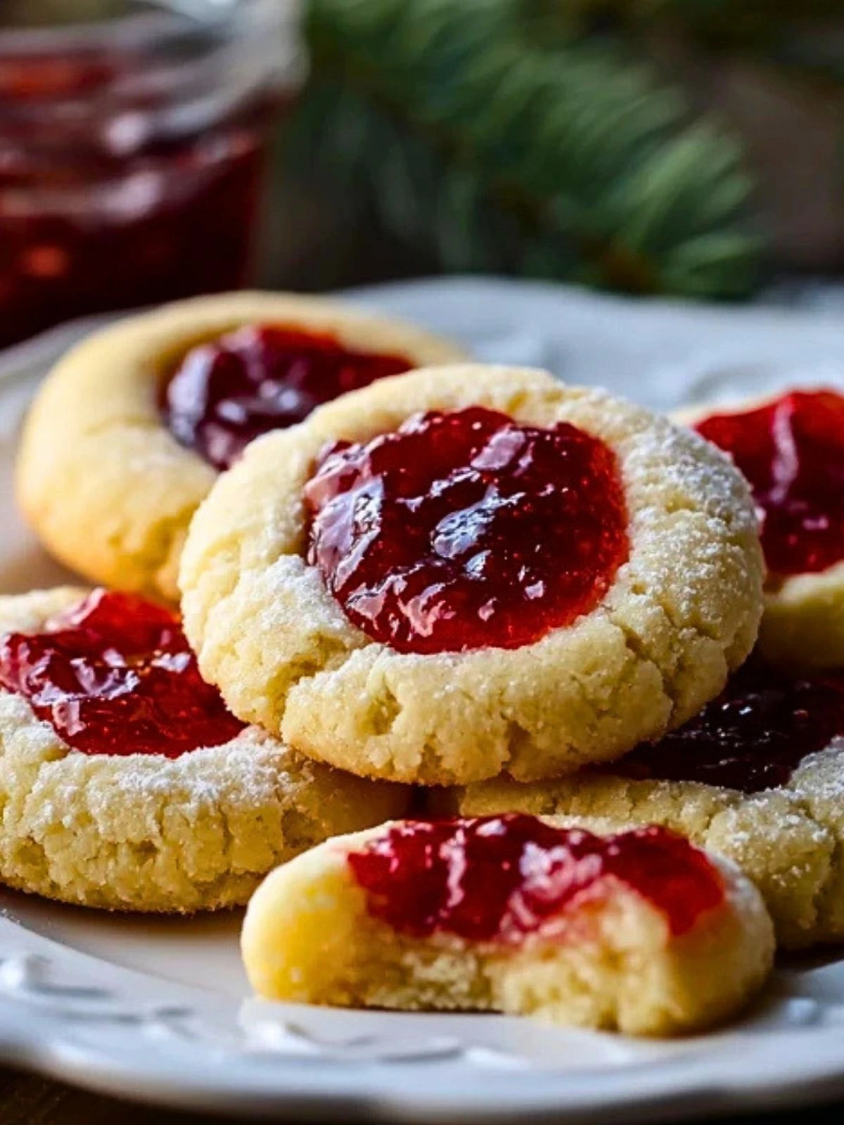 Keywords: Christmas cookies, thumbprint cookies, easy dessert, holiday baking, raspberry cookies