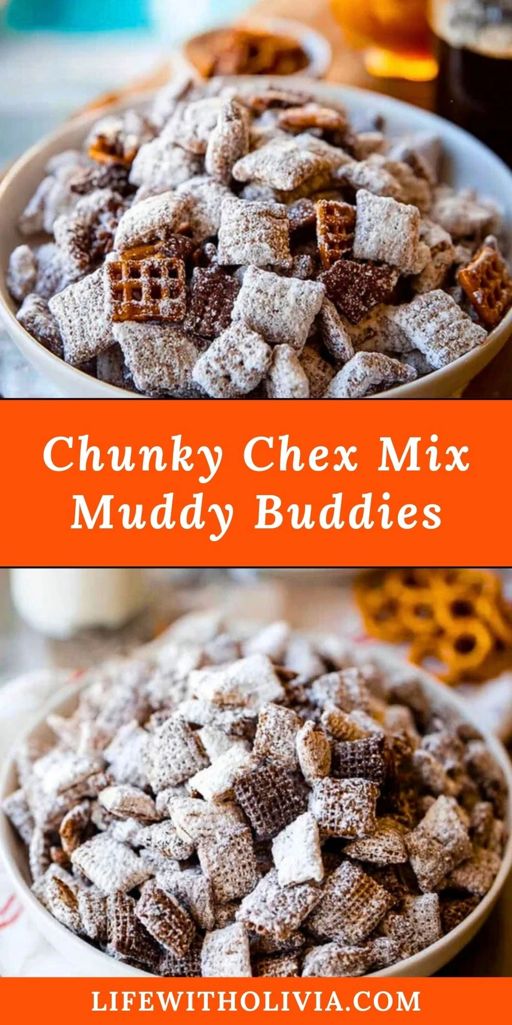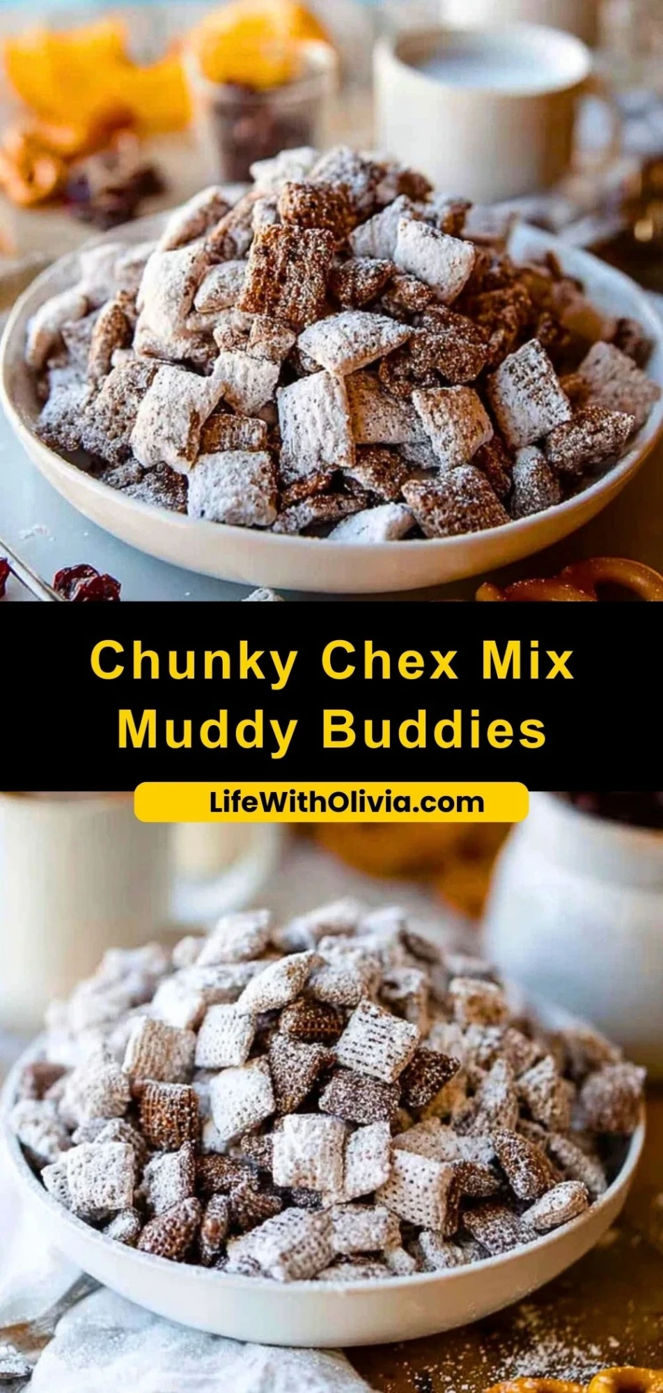 Chunky Chex Mix Muddy Buddies are a chocolate-lover’s dream—crunchy cereal coated in rich chocolate and peanut butter, dusted with powdered sugar for that nostalgic sweet bite. This upgraded version is chunkier, gooier, and completely addictive. Perfect for parties, gifts, or anytime snacking.