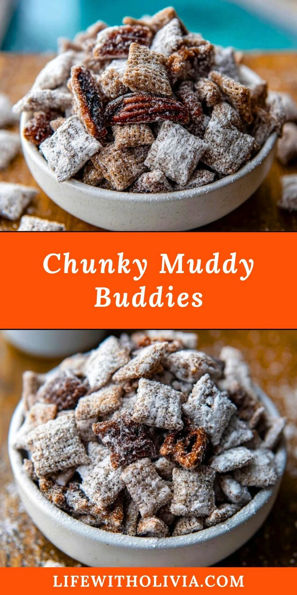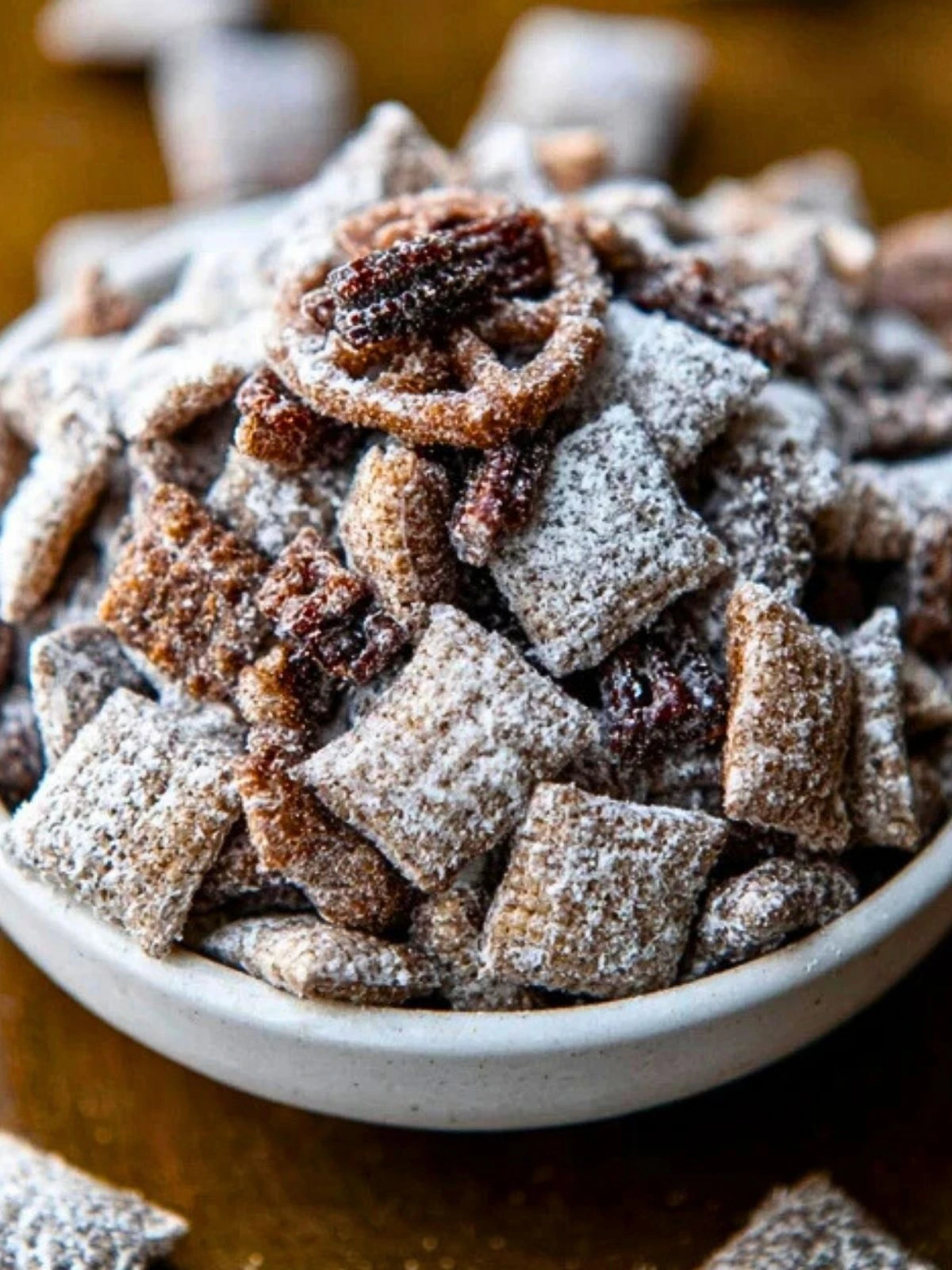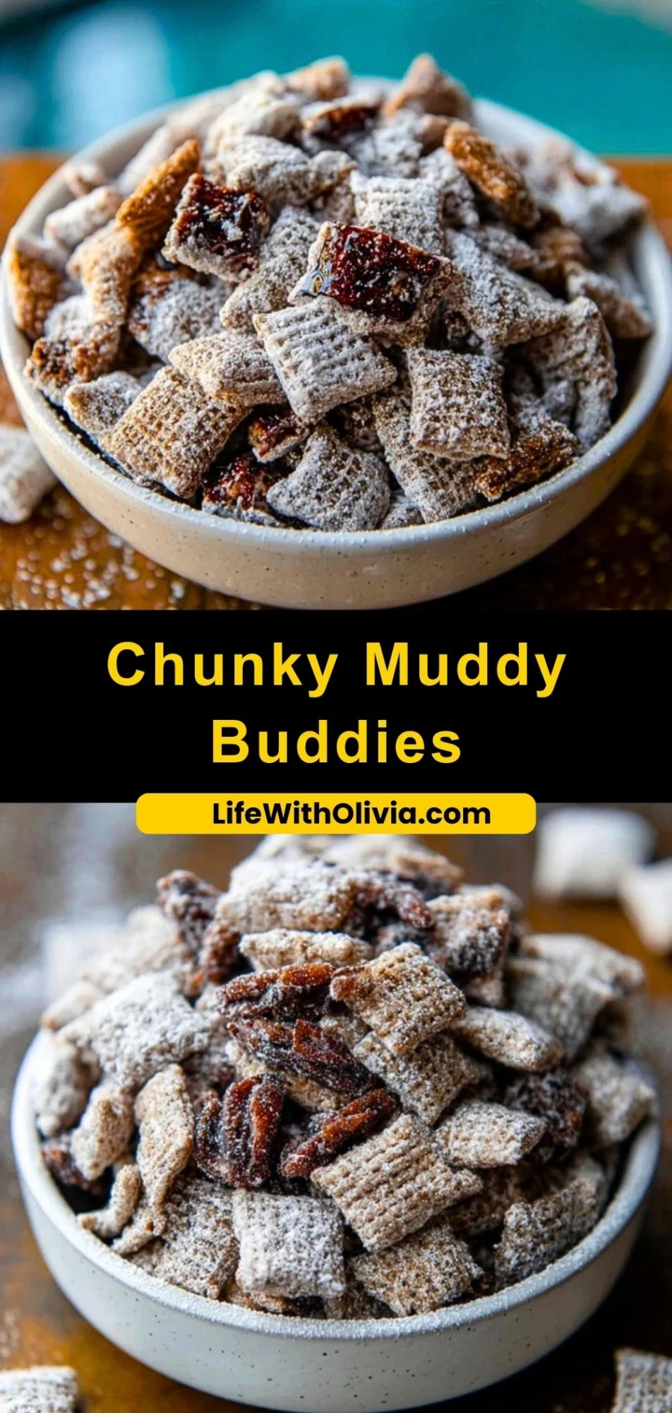 Imagine the classic snack you loved as a kid got a serious upgrade—welcome to Chunky Muddy Buddies. This recipe takes everything you adore about traditional puppy chow and cranks it up a notch with added texture, richness, and crunch. Perfectly coated cereal meets chocolatey goodness, dusted in powdered sugar and tossed with mini pretzels and candied pecans for a combination that’s impossible to resist.