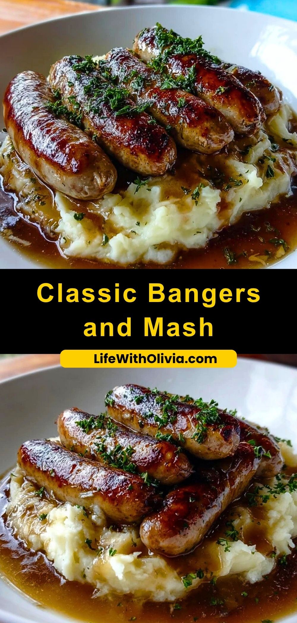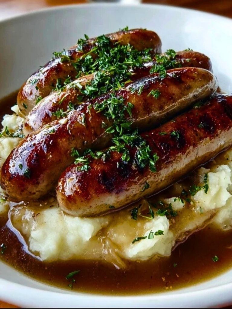 A comforting British classic, Classic Bangers and Mash pairs golden sausages with fluffy mashed potatoes and savory onion gravy. Perfect for chilly nights or any time you crave hearty, soul-warming food.