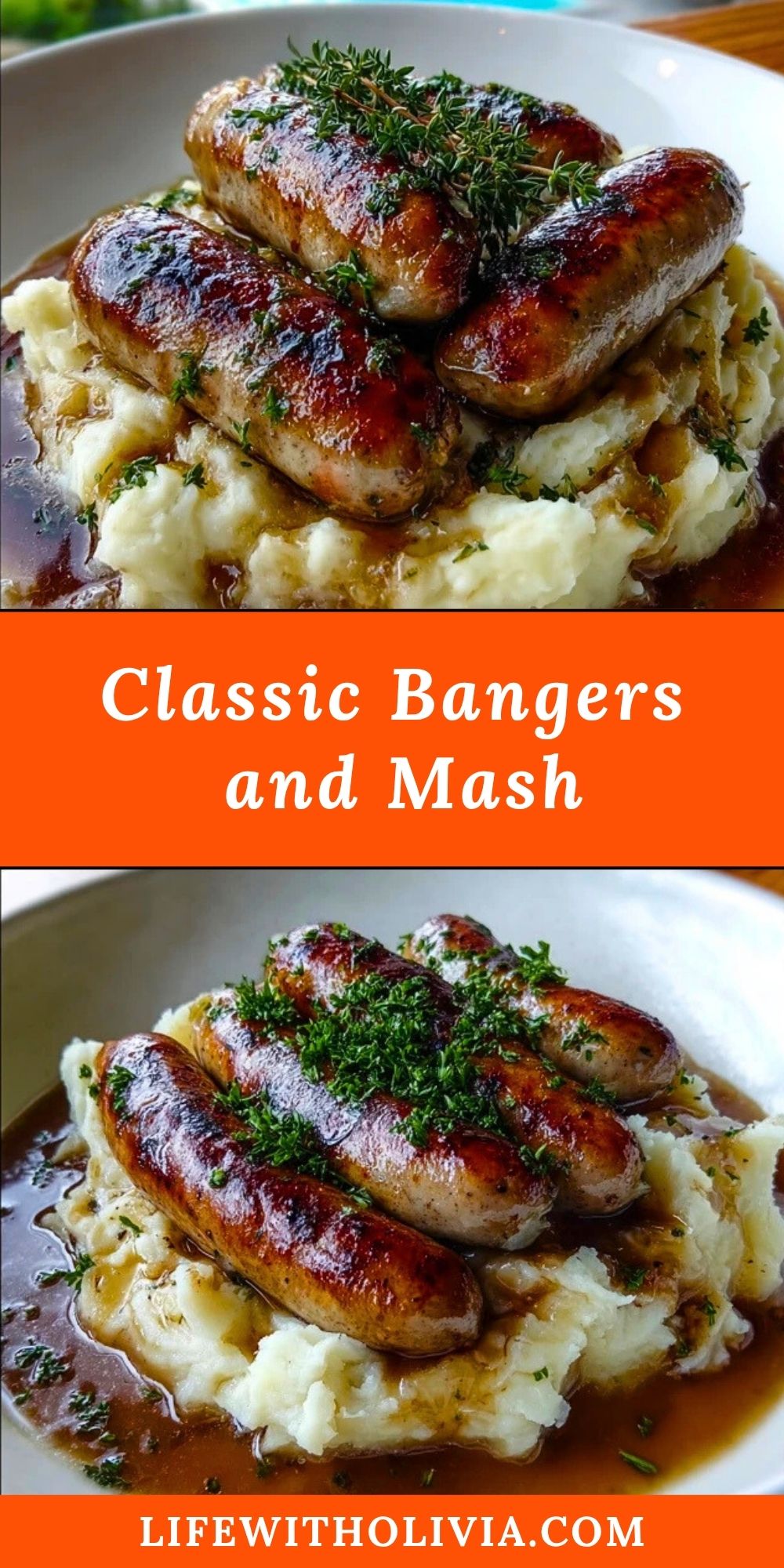 Serve your Classic Bangers and Mash piping hot, ideally on a warmed plate to keep everything cozy until the last bite. A drizzle of extra onion gravy goes a long way, especially over the mash. For a well-rounded meal, add a side of buttered peas or steamed green beans.
