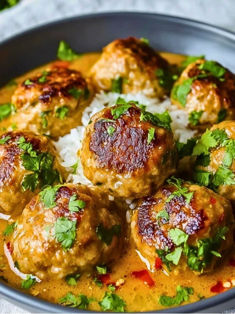 These Coconut Chicken Meatballs are everything you crave in a cozy, flavorful dinner—juicy, golden-browned meatballs swimming in a rich, creamy coconut curry sauce. Served over fluffy jasmine rice and sprinkled with fresh herbs, this dish is warm, comforting, and just exotic enough to feel special on a weeknight.