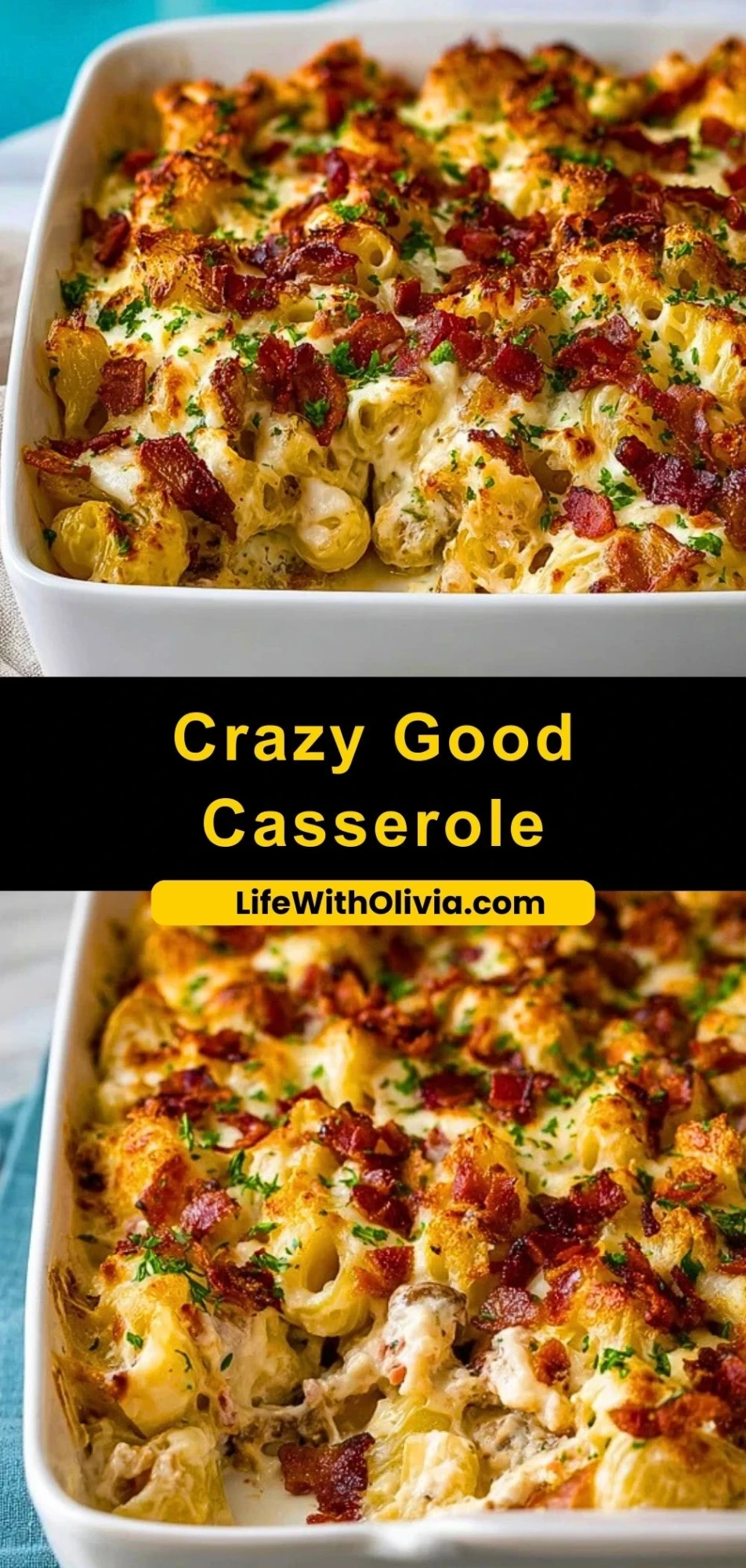 Crazy Good Casserole is the ultimate one-pan comfort dish that combines creamy chicken, tender potatoes, melted cheese, and crispy bacon in one bubbling, golden bake. Perfect for weeknights, gatherings, or prepping ahead for family meals.