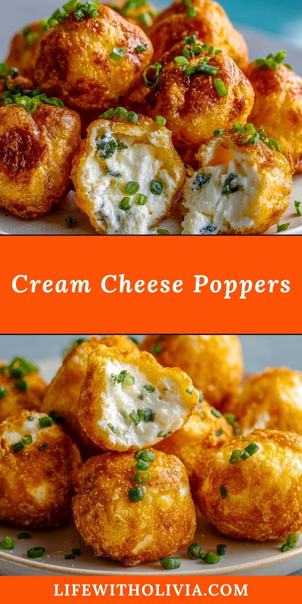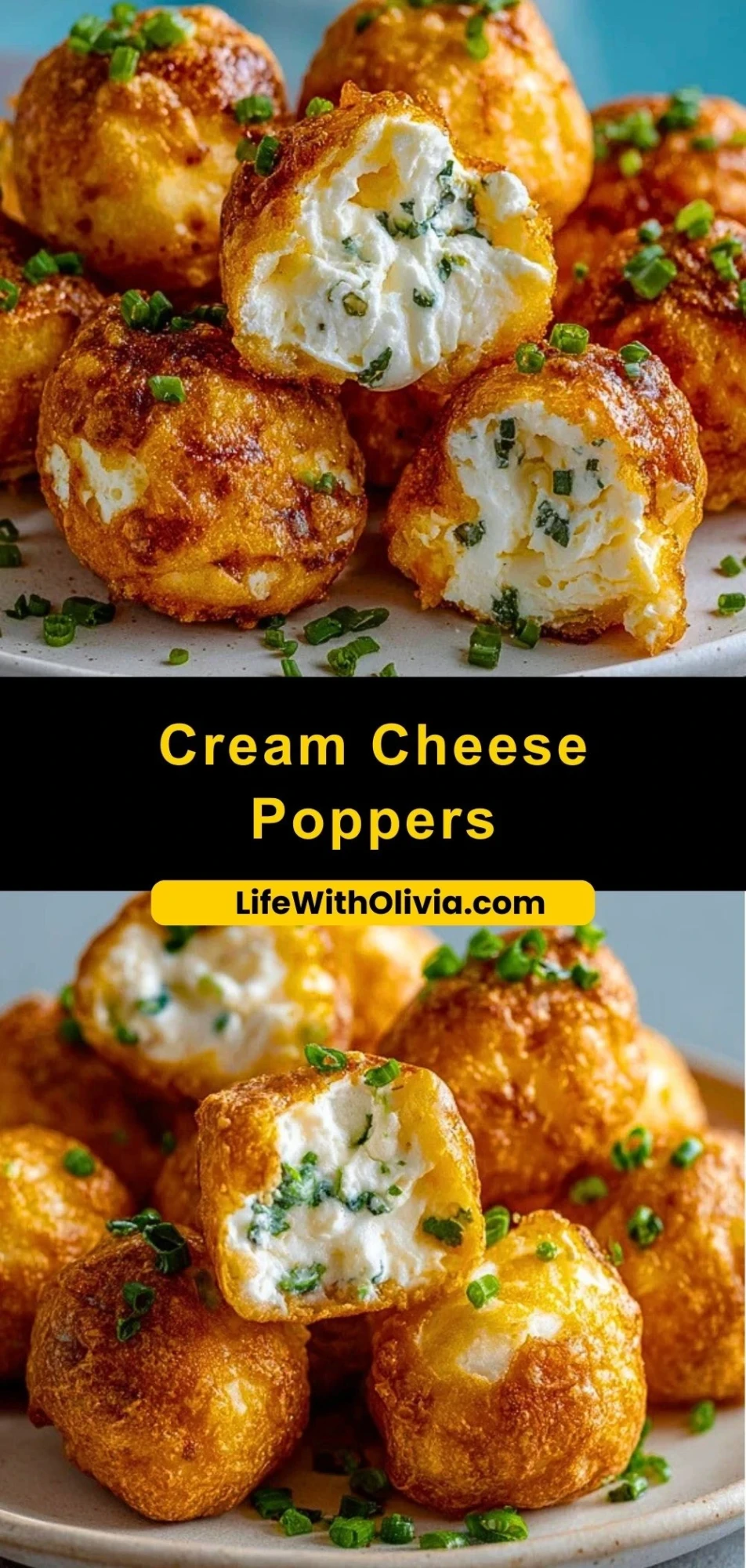 These Cream Cheese Poppers are crisp on the outside and irresistibly creamy on the inside. Made with fluffy whipped cream cheese and herbs, coated in a light batter, and fried until golden, they’re the perfect crowd-pleasing appetizer or snack.
