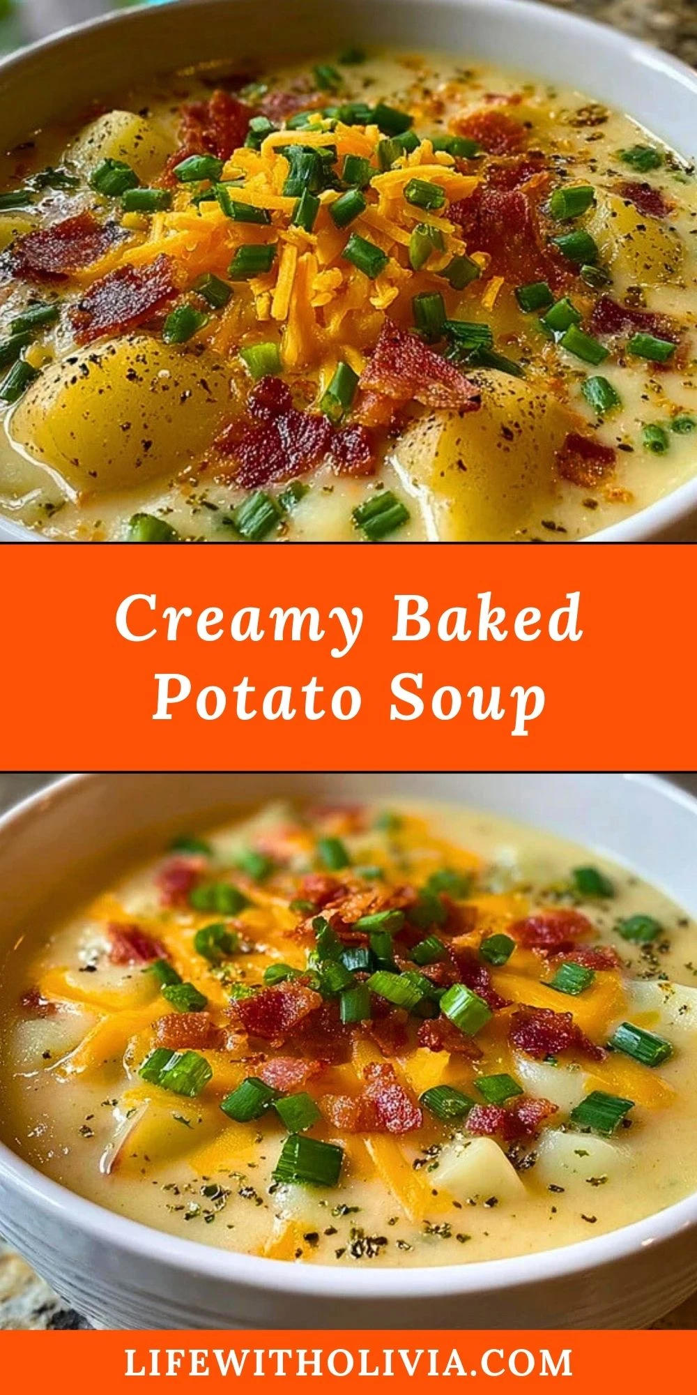 This Creamy Baked Potato Soup is the ultimate comfort in a bowl—thick, rich, and loaded with crispy bacon, cheddar cheese, and tender chunks of potato. Perfect for chilly nights, quick family dinners, or whenever you crave cozy flavors.