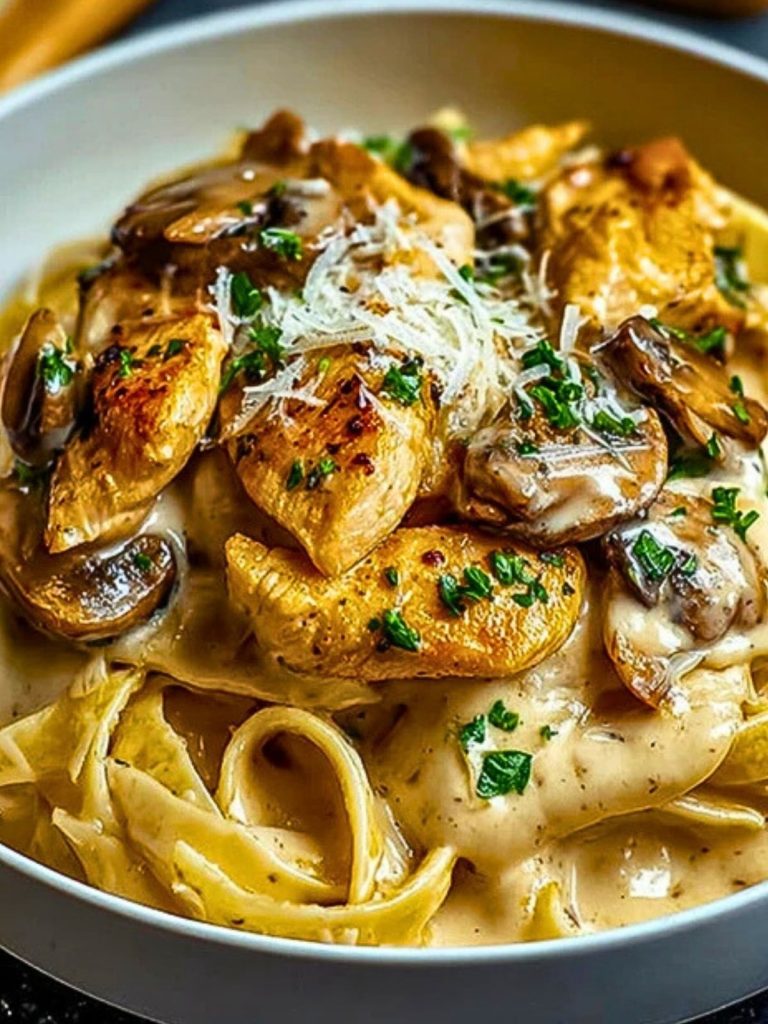 Creamy Garlic Chicken & Mushroom Pasta is the perfect blend of tender chicken, hearty mushrooms, and a luxurious garlic parmesan cream sauce. Ideal for cozy dinners or entertaining, this dish delivers restaurant-quality flavor from the comfort of home.