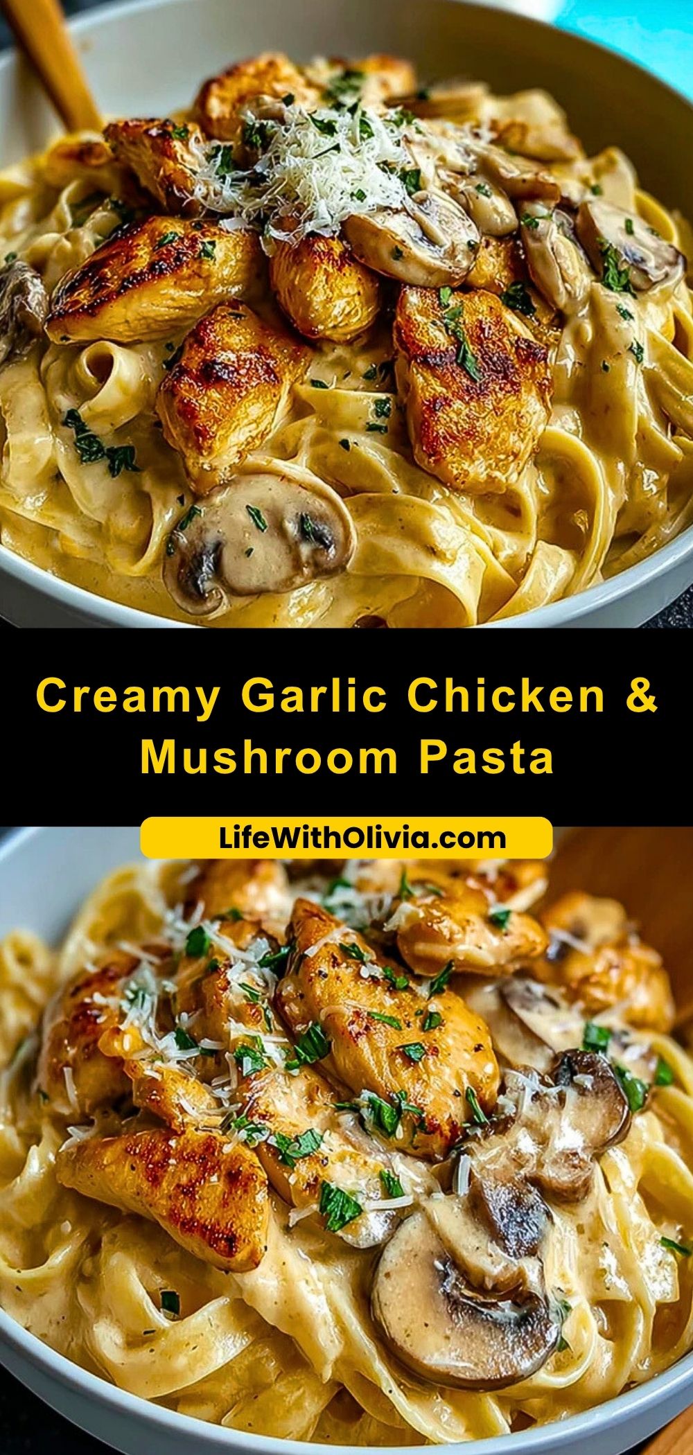Creamy Garlic Chicken & Mushroom Pasta is the ultimate comfort food that brings rich, velvety sauce and savory ingredients to your dinner table. Imagine perfectly seared chicken breasts, golden and juicy, nestled in a bed of pasta drenched in a luscious garlic cream sauce. Earthy mushrooms add a hearty depth, while fresh herbs and parmesan finish each bite with a hint of brightness. This is the kind of meal that makes any evening feel special.