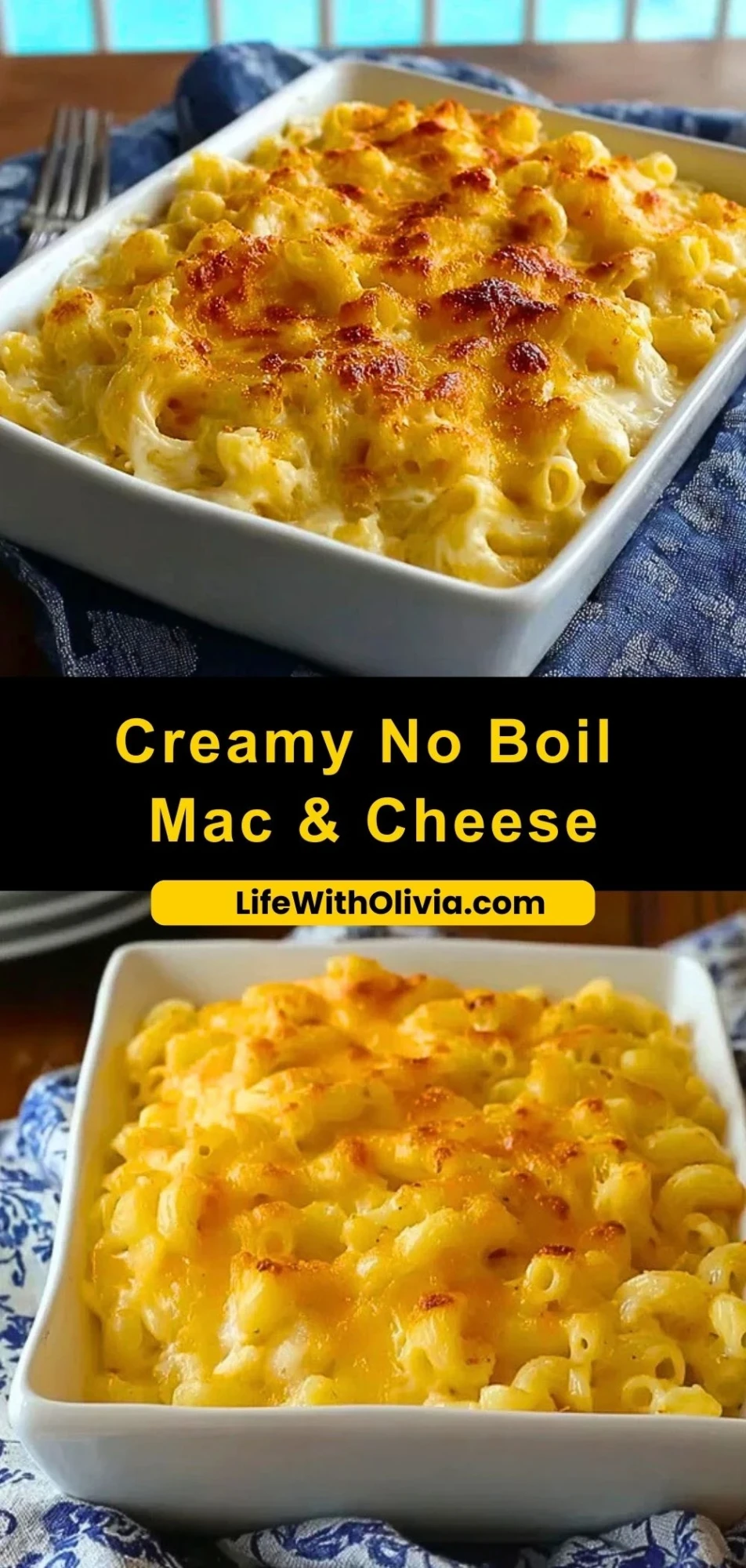 Creamy No Boil Mac & Cheese is best served hot and fresh from the oven. Let it sit for a few minutes to settle before scooping generous portions onto plates. It pairs wonderfully with a crisp green salad, roasted vegetables, or even as a decadent side to barbecue or fried chicken.