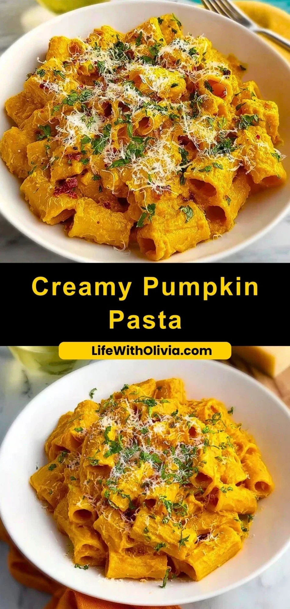 Keywords: creamy pumpkin pasta, fall pasta, pumpkin dinner