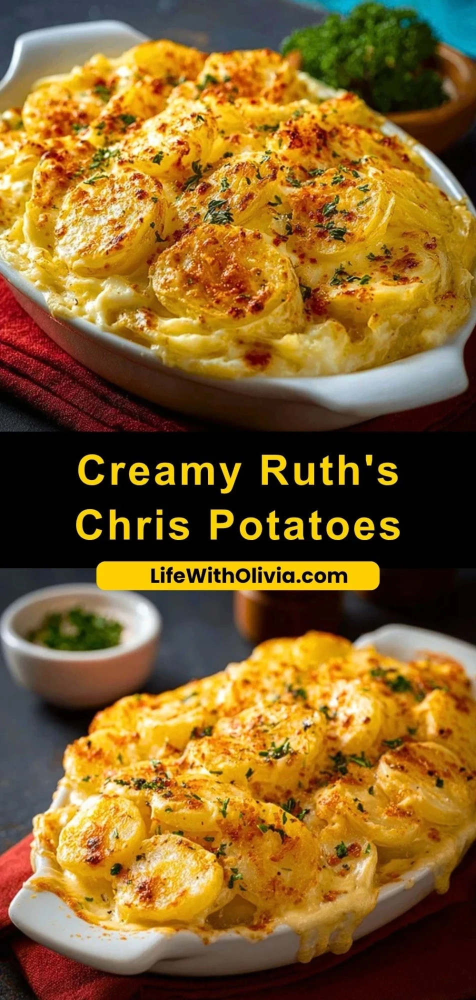Indulge in these Creamy Ruth’s Chris Potatoes, a rich and comforting side dish perfect for any occasion. This easy recipe features tender sliced potatoes baked in a velvety cream sauce with garlic, butter, and Parmesan cheese, making it one of the best dinner ideas or holiday sides. Whether you’re looking for a cozy comfort food, an easy recipe for family meals, or delicious food ideas to impress guests, this dish delivers creamy, cheesy perfection in every bite.