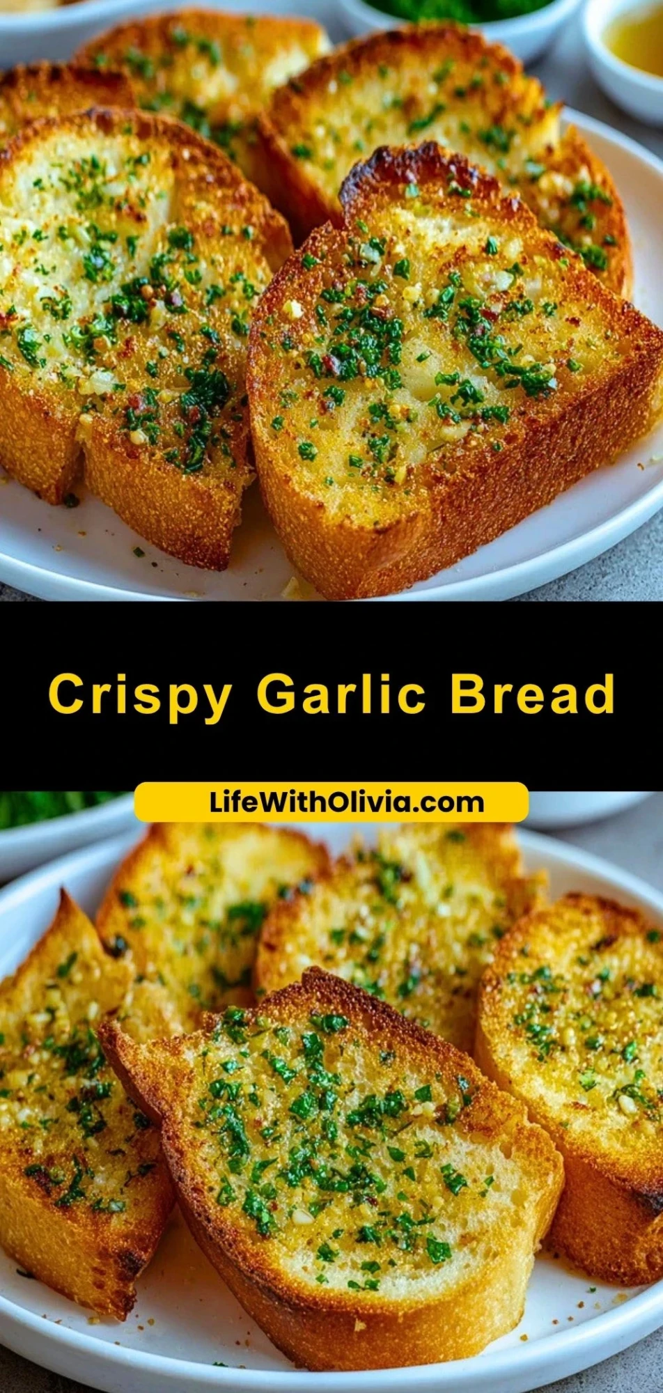 Serve Crispy Garlic Bread warm for the best texture and flavor. It pairs beautifully with pasta dishes, soups, or salads, and also works as a quick appetizer.