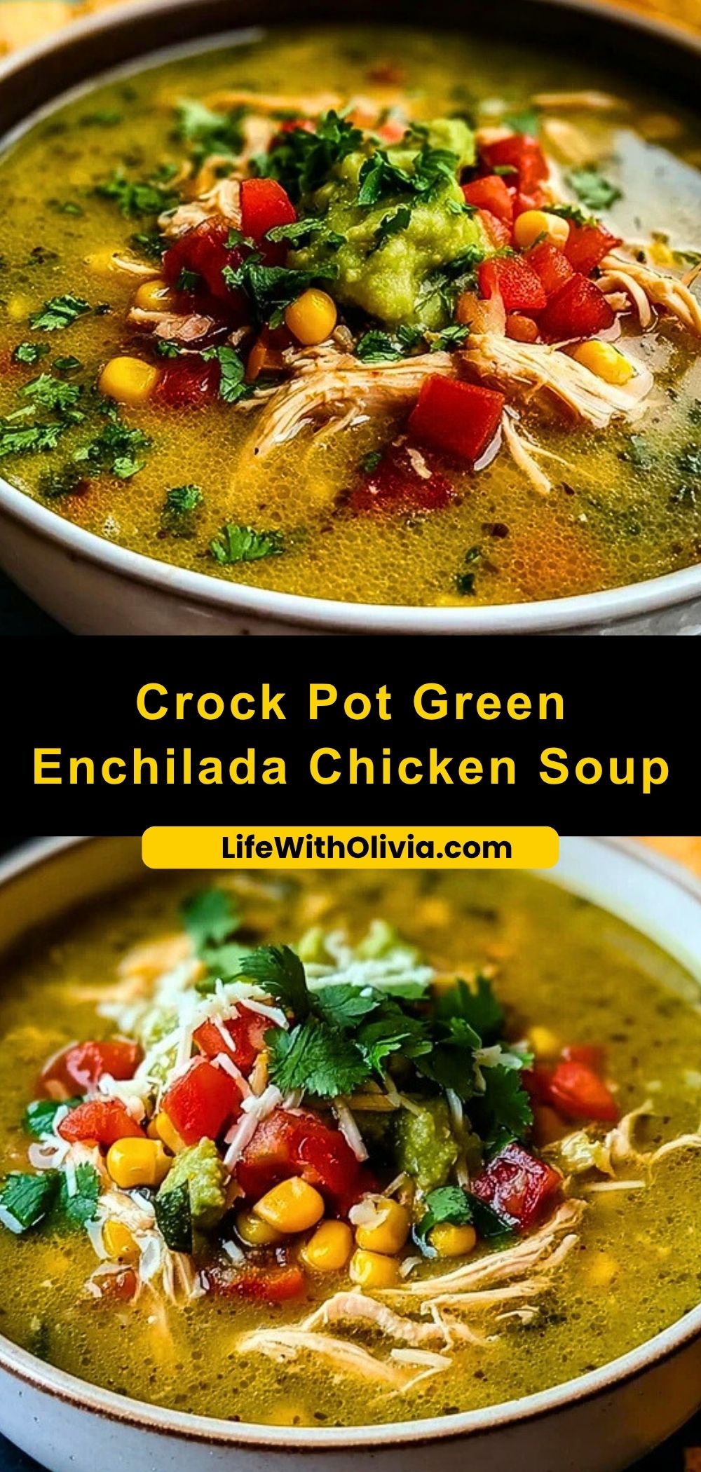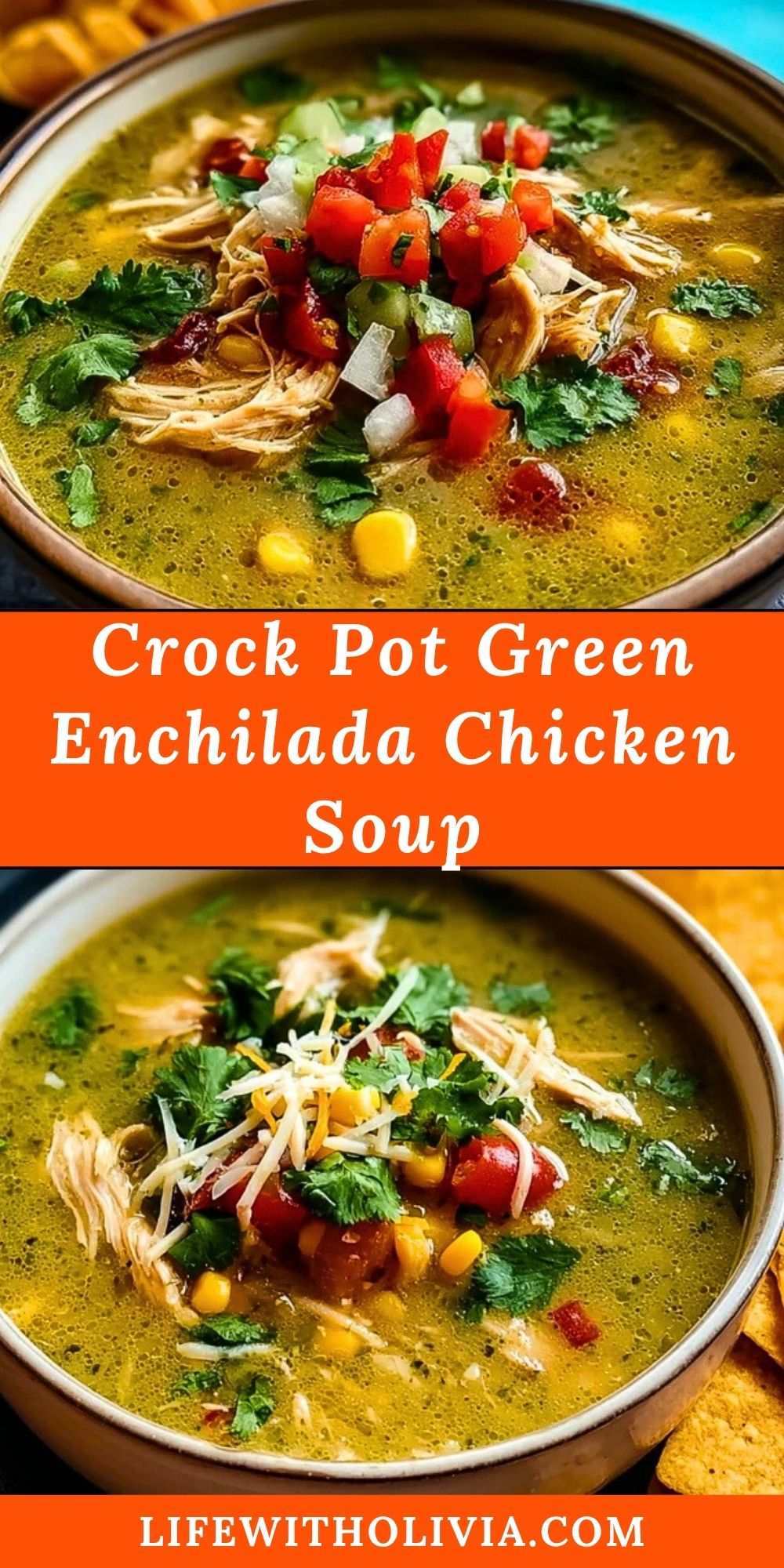 Keywords: enchilada soup, crock pot soup, green chili chicken, creamy chicken soup