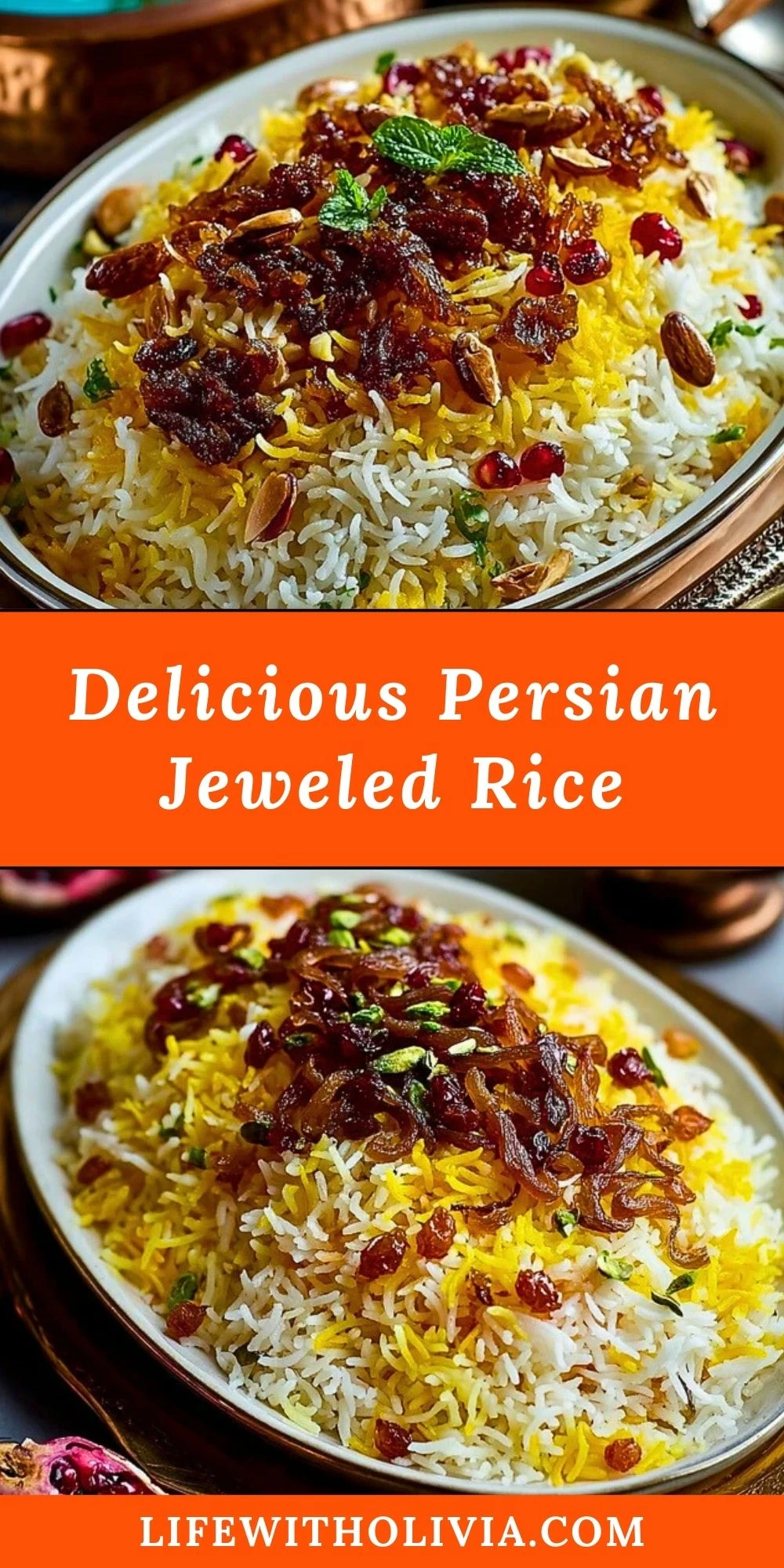 This vibrant rice dish is meant to be the star of your table. Serve Persian Jeweled Rice warm, preferably on a large platter that showcases its golden hues and colorful toppings. It pairs beautifully with roasted meats, grilled chicken, or even as a vegetarian centerpiece alongside yogurt-based sides like mast-o-khiar (Persian cucumber yogurt).