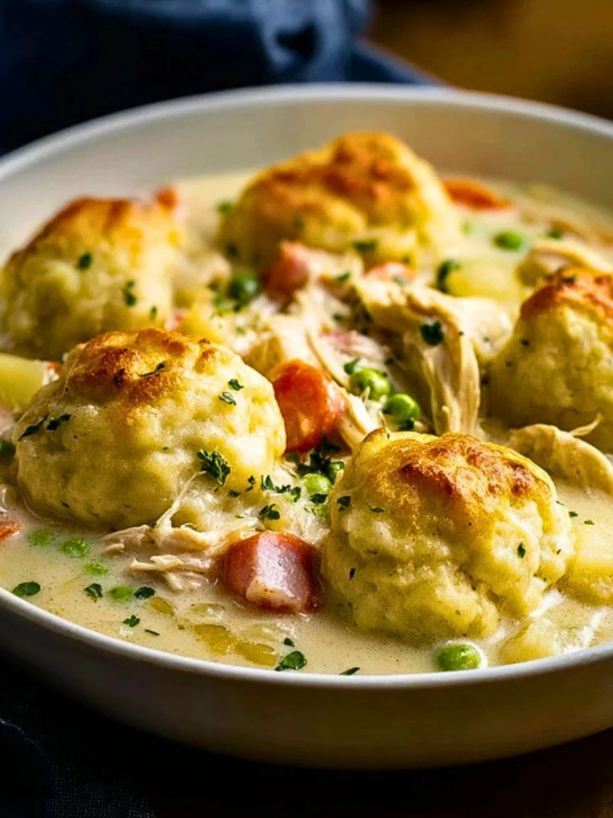 When it comes to comfort food that warms the soul and satisfies every craving, nothing beats a hearty bowl of Chicken and Dumplings. This version takes a clever shortcut with fluffy, golden-baked biscuits instead of traditional dumplings, making it perfect for busy weeknights without compromising that down-home flavor. With tender shredded chicken, creamy broth, sweet peas, and carrots, this dish feels like a cozy hug in every spoonful.