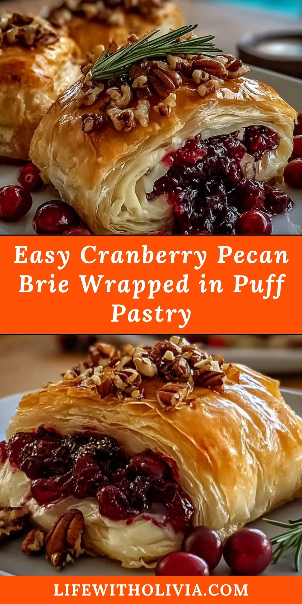 Easy Cranberry Pecan Brie Wrapped in Puff Pastry