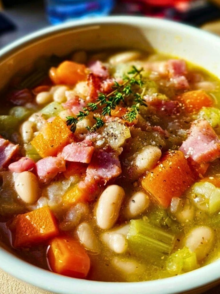 The smoky richness from the ham, the tender white beans, and the mix of carrots, celery, and aromatic herbs create a hearty, satisfying dish. Whether you’re using leftover ham from a holiday meal or a quick store-bought version, this soup delivers on both taste and ease.