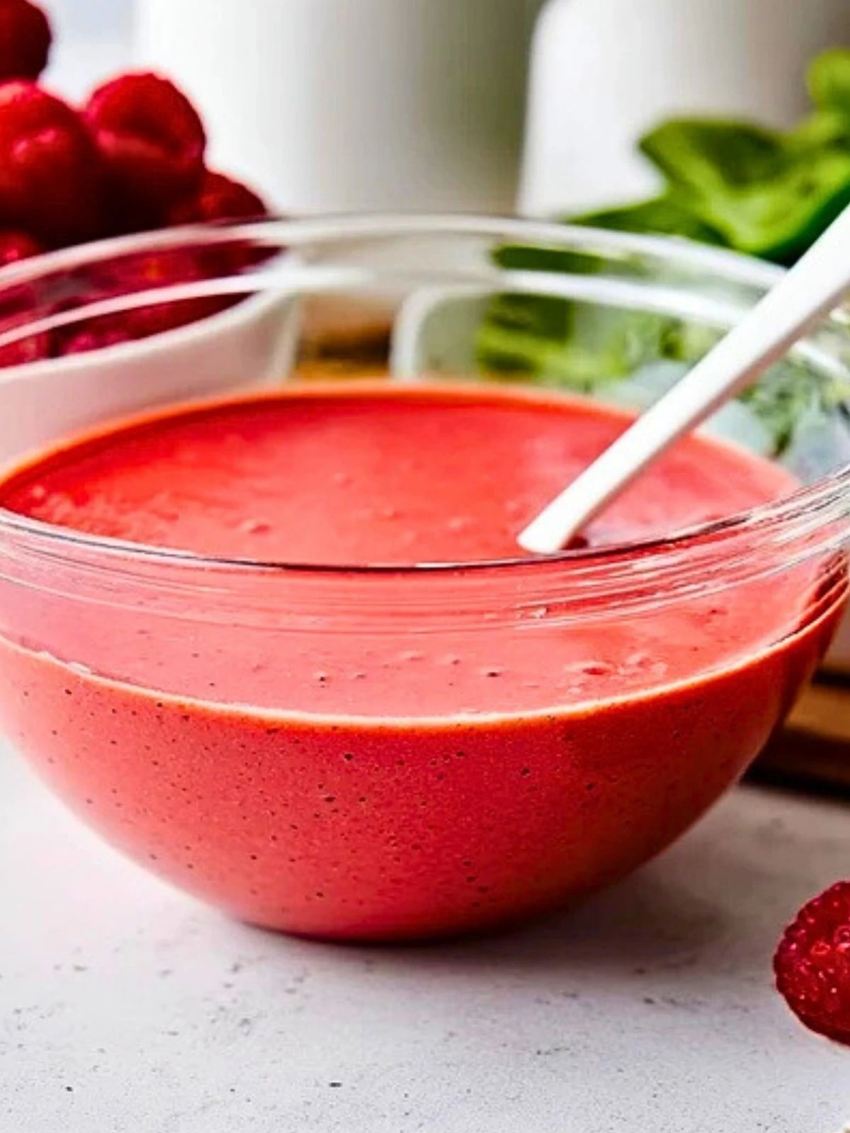 A fresh and tangy homemade raspberry vinaigrette that’s quick to make and full of fruity flavor. This vibrant pink dressing is perfect for salads, grain bowls, or as a glaze for grilled chicken or seafood. It’s naturally sweetened and made with real ingredients—no additives, just wholesome goodness.