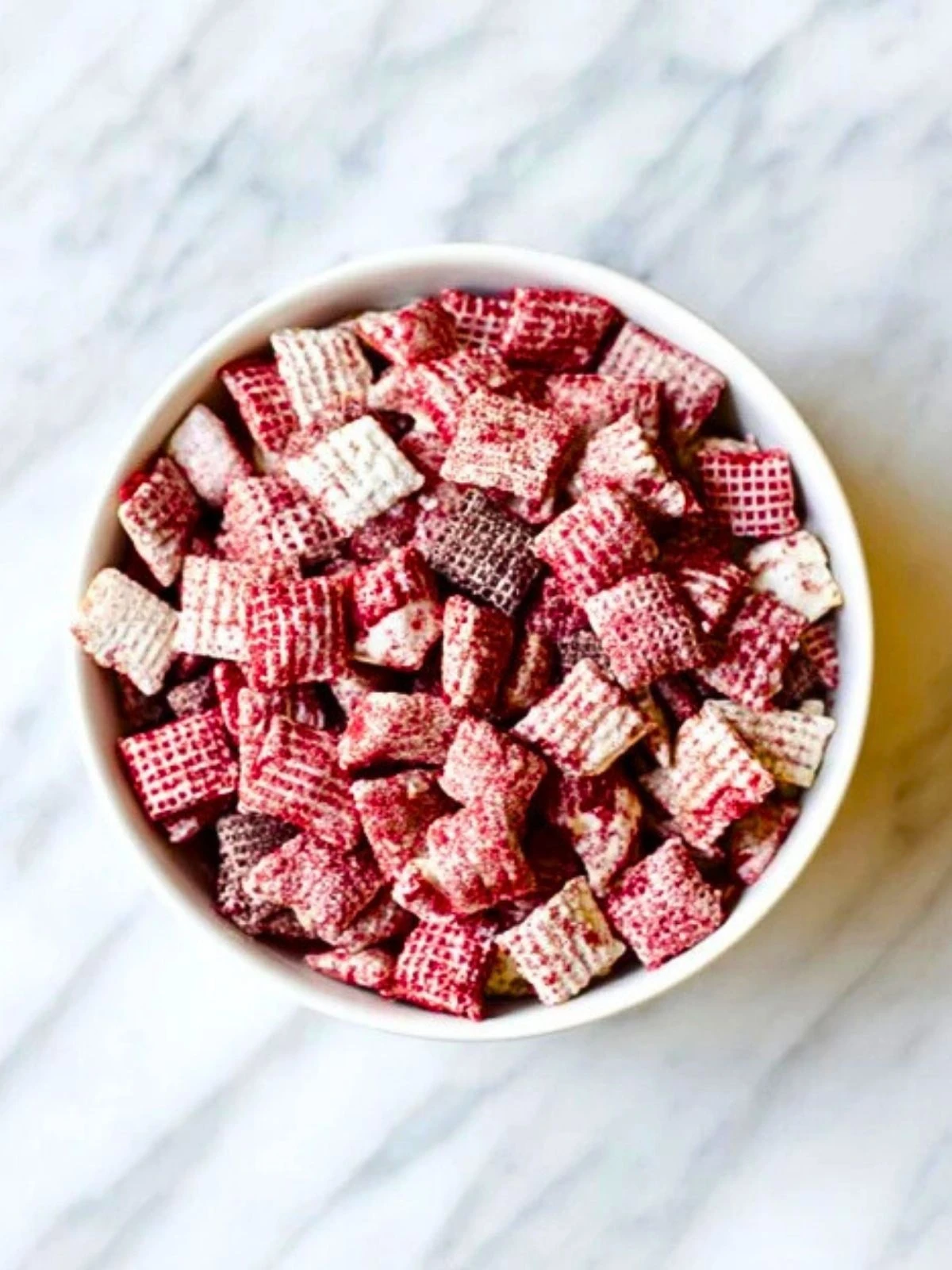 Keywords: red velvet, puppy chow, snack mix, no-bake, chex mix