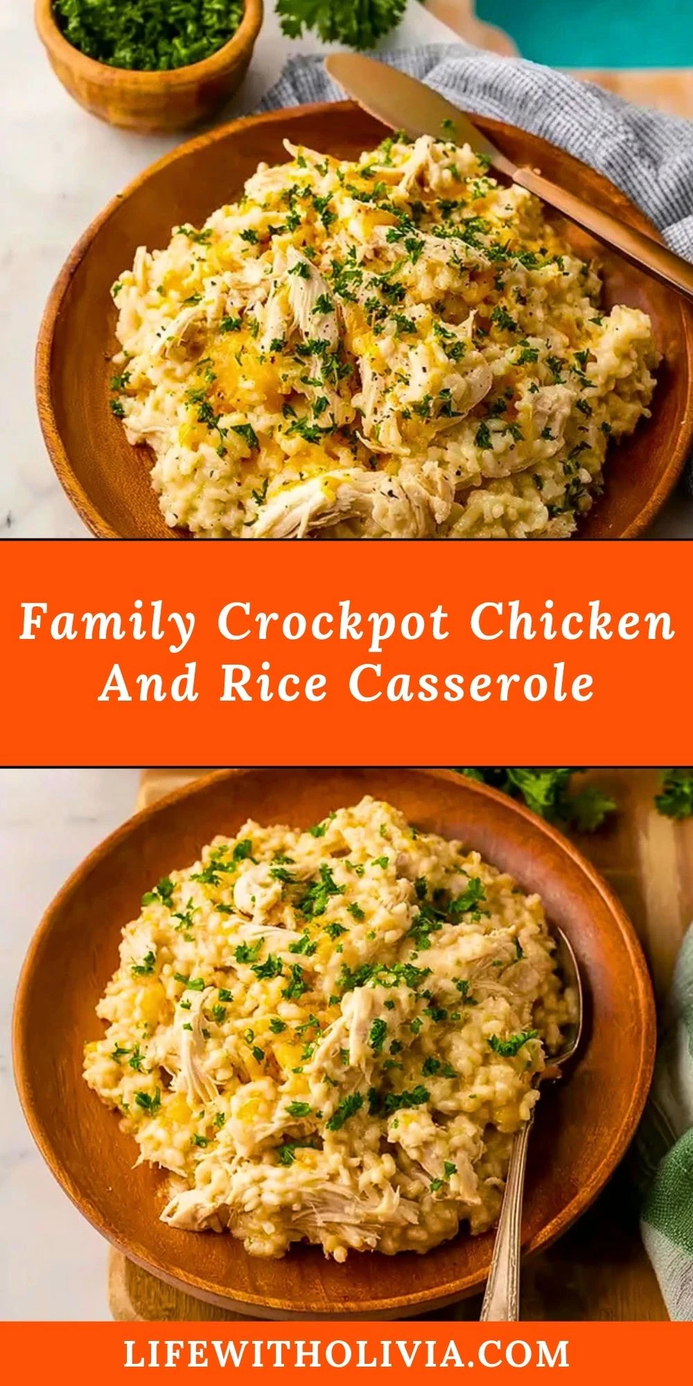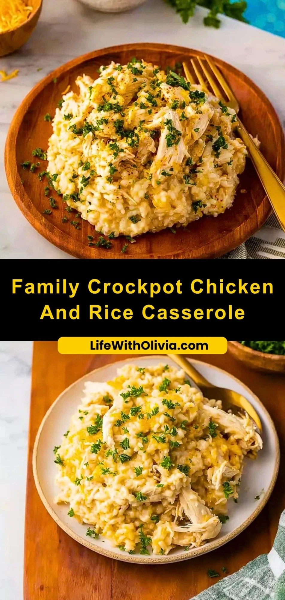 This Family Crockpot Chicken And Rice Casserole is the ultimate comfort food and an easy dinner idea perfect for busy weeknights. Made with tender shredded chicken, creamy rice, and rich savory flavors, this easy recipe delivers a hearty and satisfying meal the whole family will love. Whether you’re looking for quick dinner ideas or cozy food ideas, this slow cooker classic is simple, delicious, and always a crowd-pleaser.
