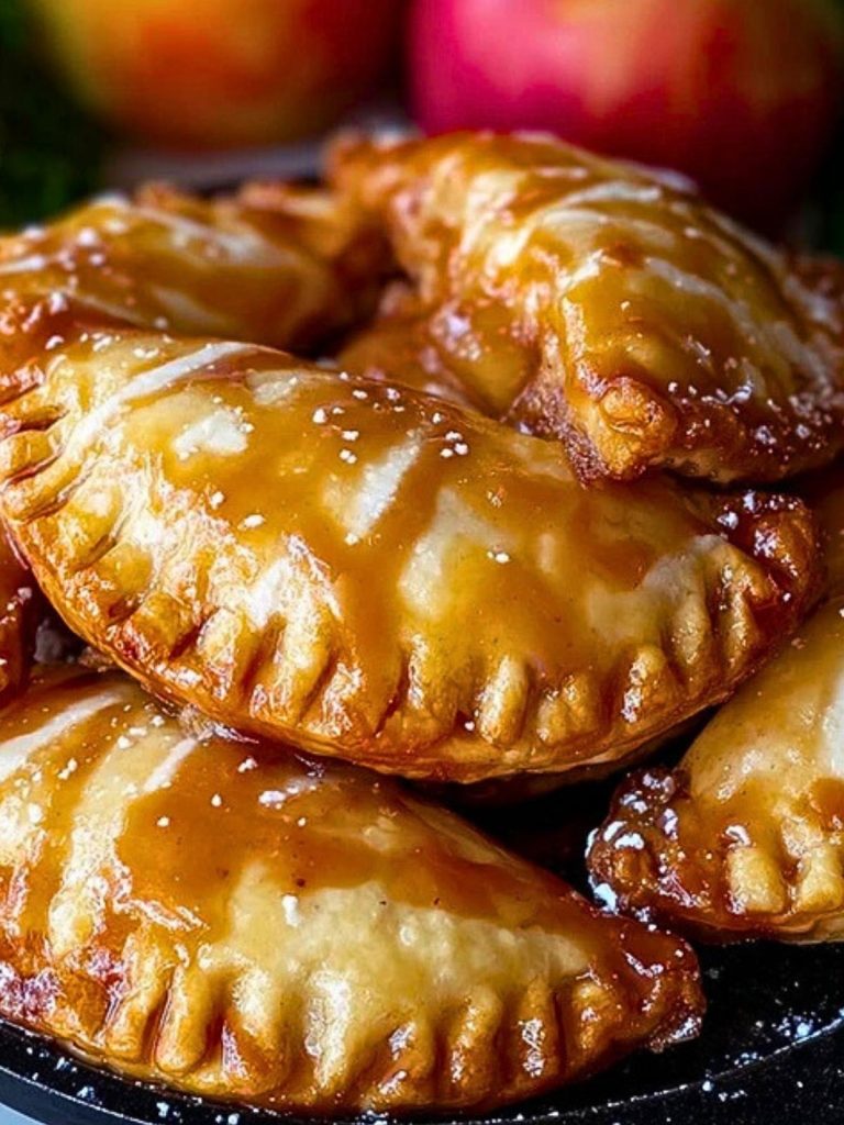 Golden, crispy fried apple pies filled with warm cinnamon-spiced apples and sealed in a flaky crust, then drizzled with caramel. A cozy, nostalgic dessert perfect for holidays, gatherings, or a simple comfort-food craving.