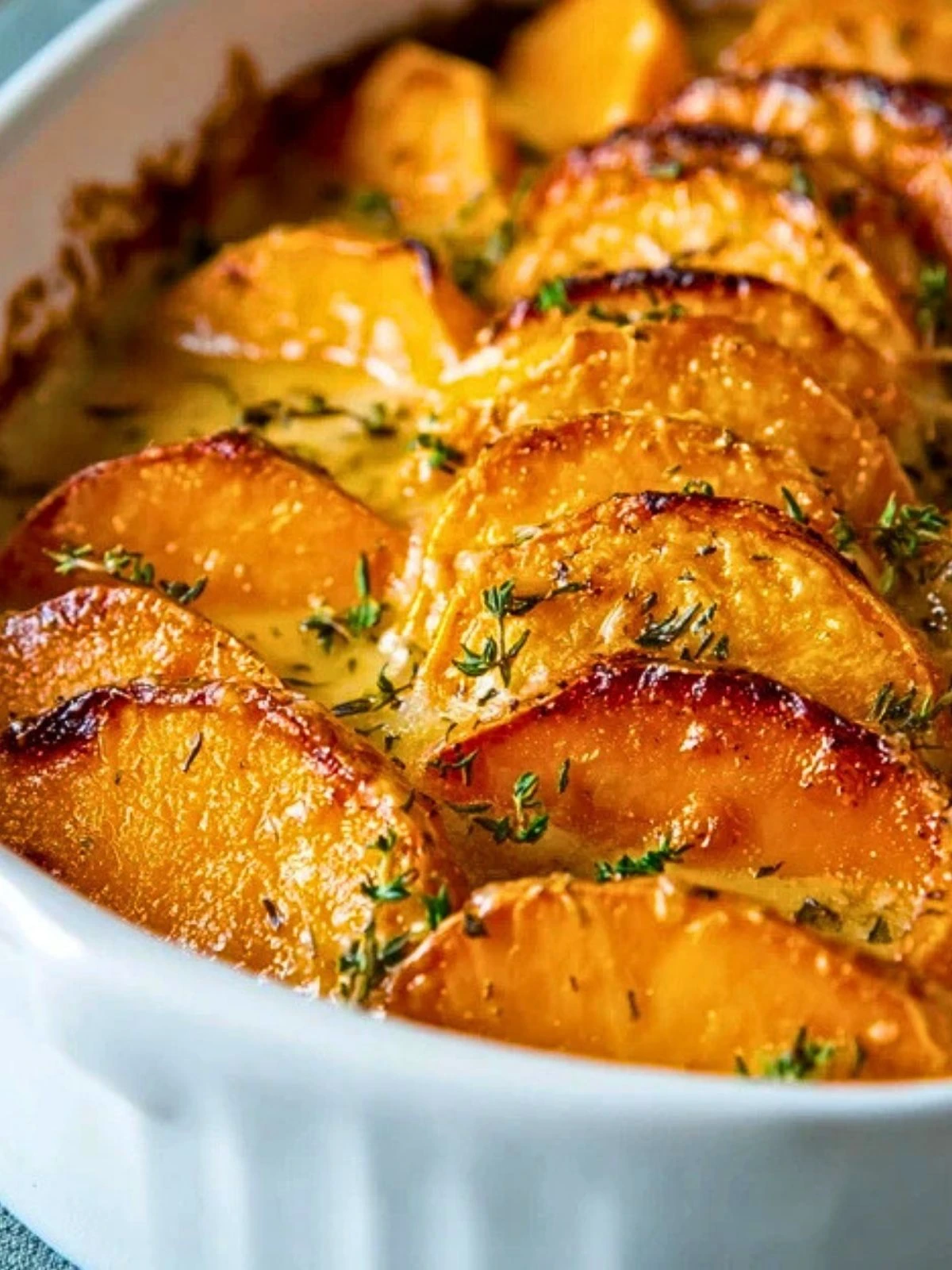 What sets this dish apart is how it balances hearty and elegant. The layering of thinly sliced sweet potatoes, infused with garlic and thyme, turns into a bubbly, melt-in-your-mouth texture as it bakes. It’s a warm, crowd-pleasing casserole that doesn’t just taste amazing—it looks stunning coming out of the oven too.