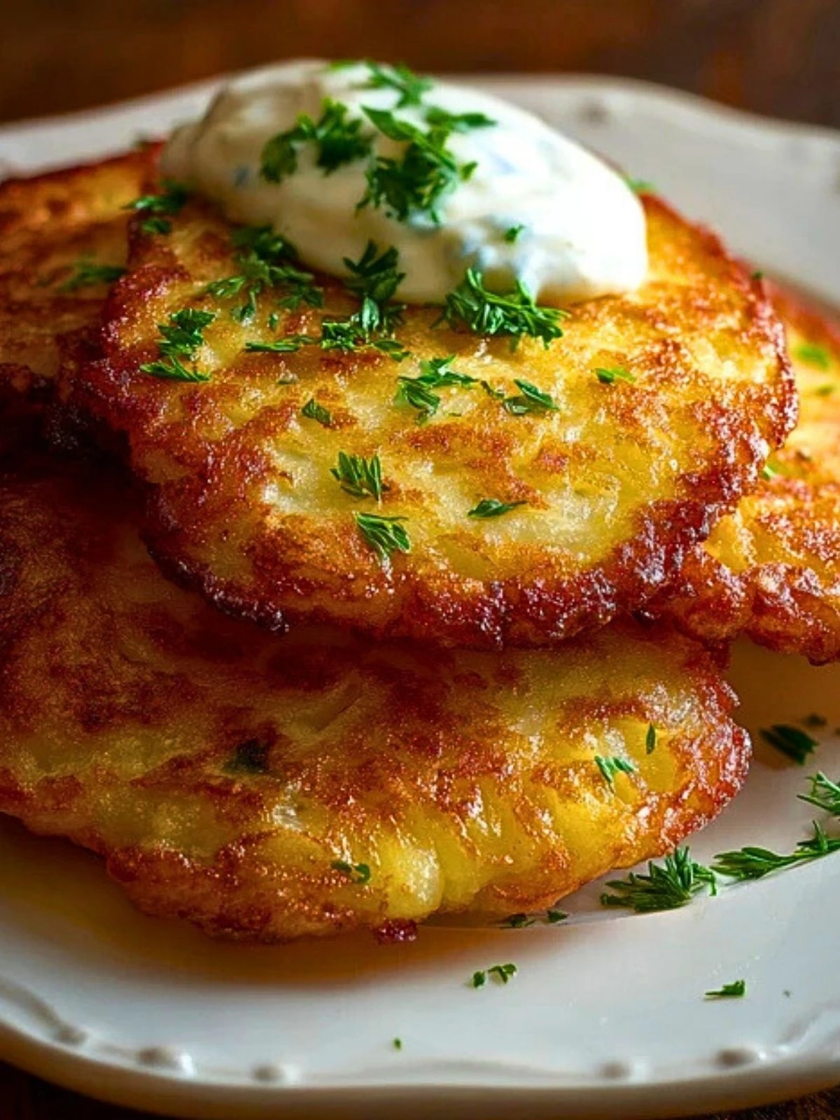 Transfer to a paper towel-lined plate to drain any extra oil. Serve hot with sour cream, applesauce, or your favorite topping.