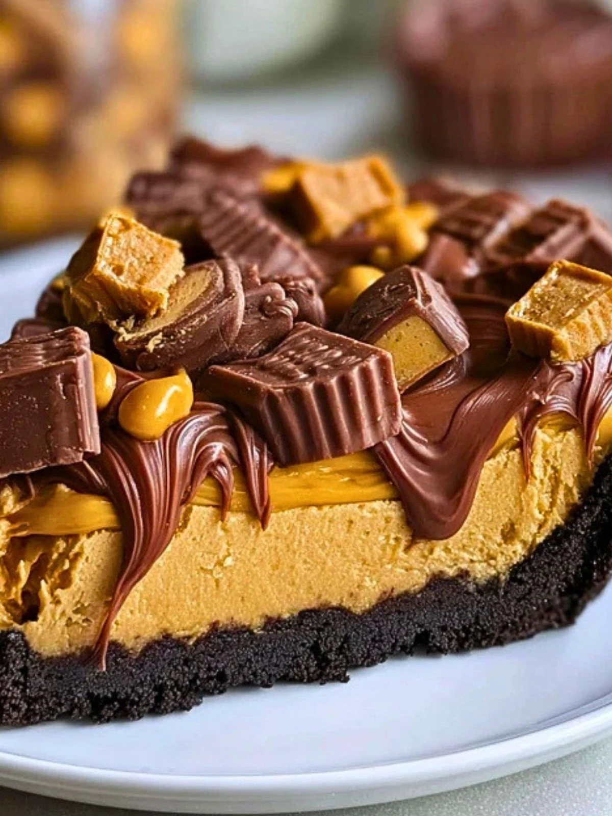 Brace yourself, peanut butter lovers—this Giant Reese’s Peanut Butter Cup is about to take your dessert game to the next level. Imagine a buttery chocolate cookie crust, a luscious peanut butter mousse filling, and silky layers of chocolate ganache topped with bite-sized Reese’s cups and butterscotch chips. Every bite delivers a perfect balance of sweet, salty, creamy, and crunchy. It’s the ultimate no-bake treat that brings all the nostalgic flavors of a Reese’s cup, supersized.
