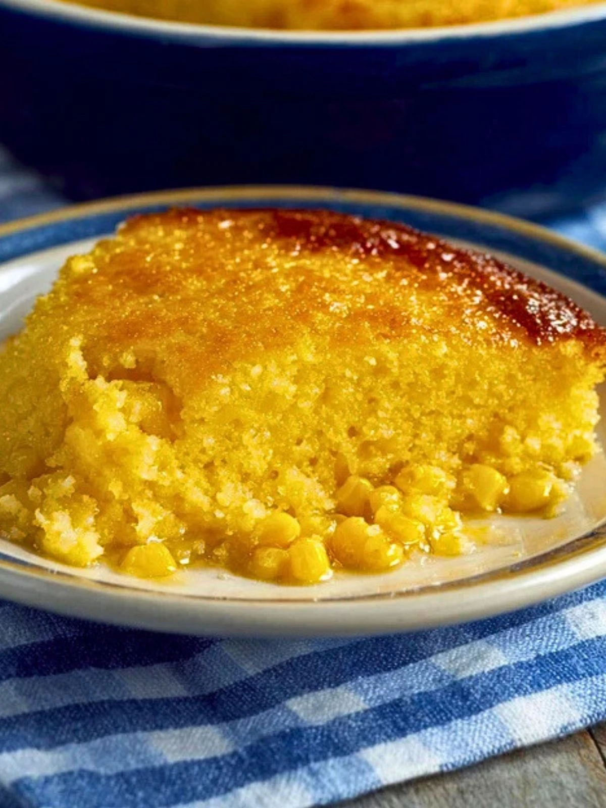 Allow the corn pudding to cool for 5-10 minutes before serving. This helps it firm up and makes it easier to slice into squares.