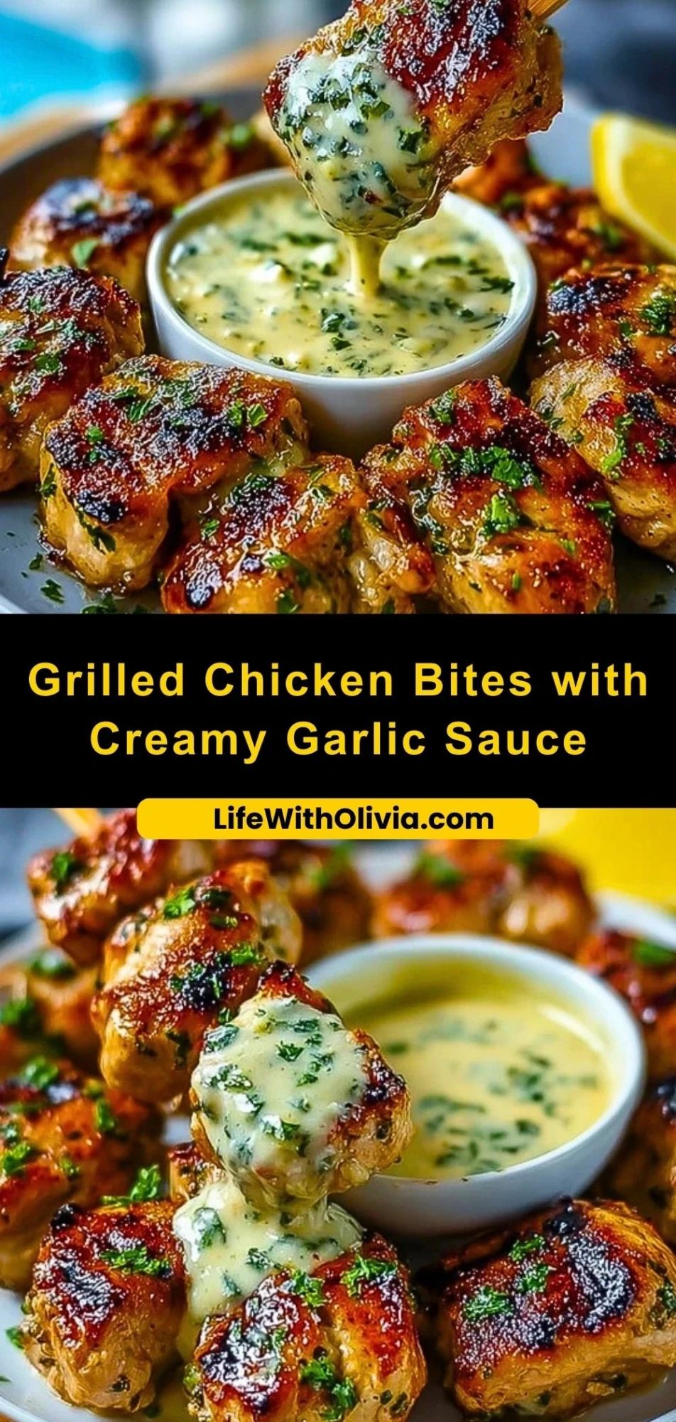 Grilled Chicken Bites with Creamy Garlic Sauce
