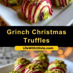 These Grinch Christmas Truffles are as fun to make as they are to eat! With their vibrant green color, festive red drizzle, and snowy white chocolate coating, they’re guaranteed to steal the show at your next holiday party. Whether you’re looking for a no-bake treat for a cookie exchange or simply want to surprise your kids with something whimsical, these truffles hit all the right notes of sweet, nutty, and creamy.