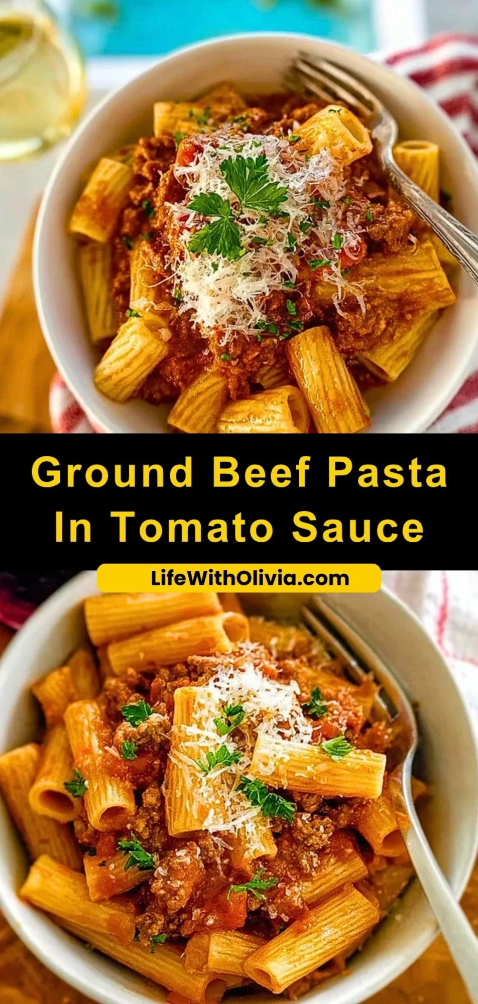 A comforting bowl of ground beef pasta in tomato sauce is one of those timeless meals that brings warmth to the table with minimal effort. The rich, savory beef combined with a perfectly seasoned tomato sauce creates a hearty dish that feels both satisfying and familiar.