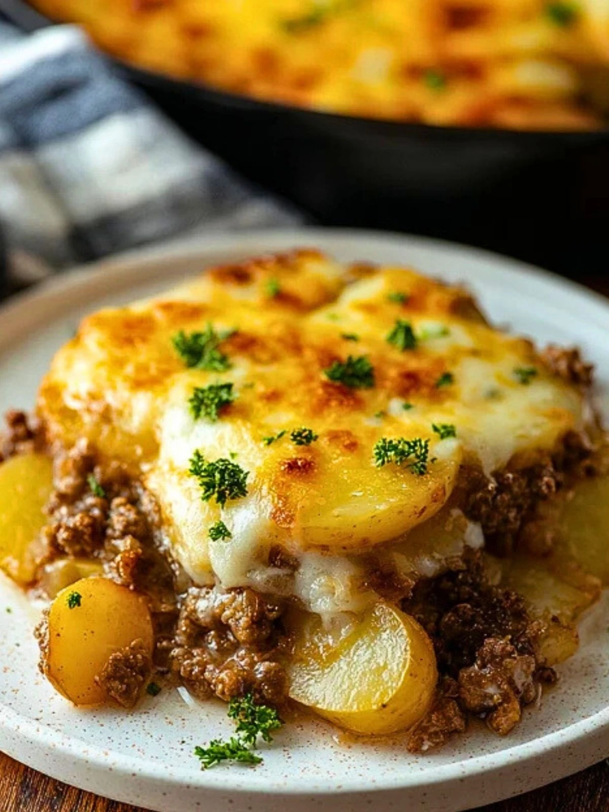 Keywords: ground beef potato casserole, easy dinner recipe, comfort food casserole, family dinner ideas