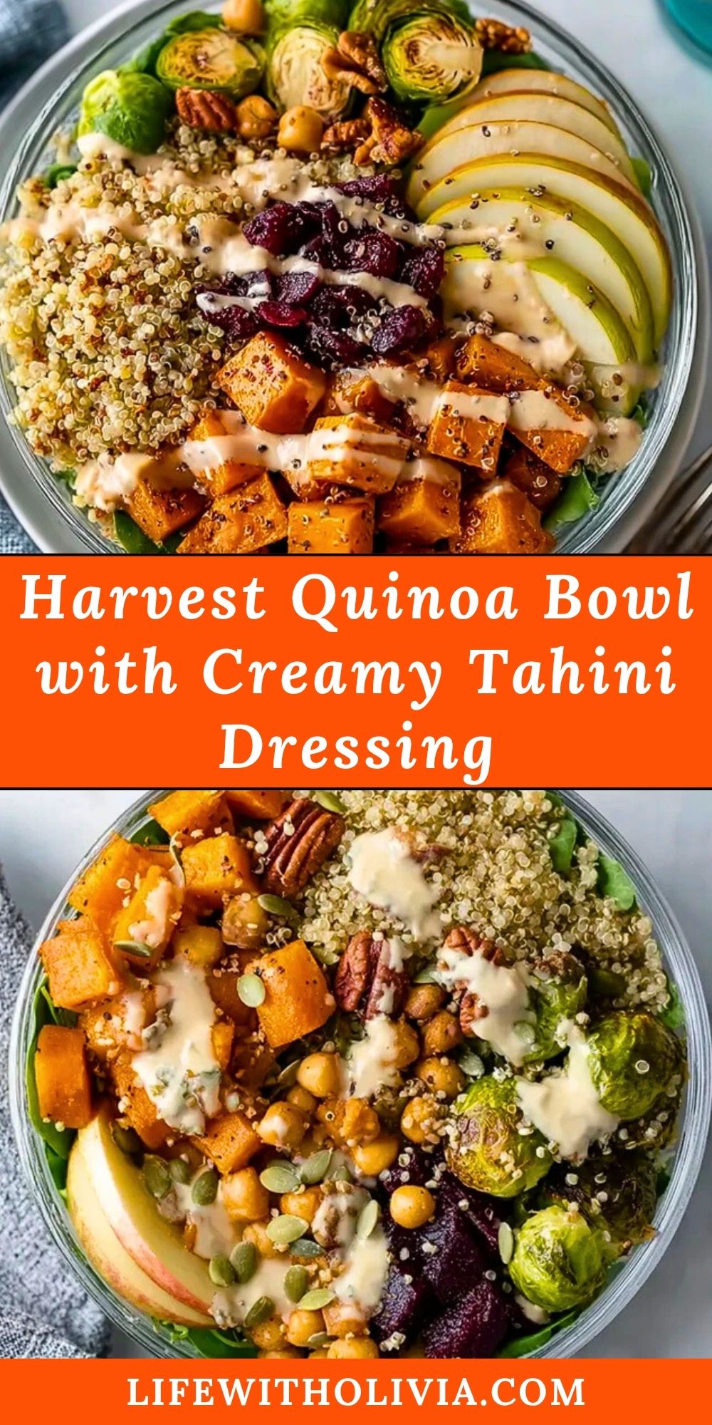 This Harvest Quinoa Bowl with Creamy Tahini Dressing is a colorful, nourishing fall-inspired meal packed with roasted seasonal veggies, hearty quinoa, and topped with a velvety tahini sauce. It’s perfect for meal prep, quick dinners, or festive gatherings.