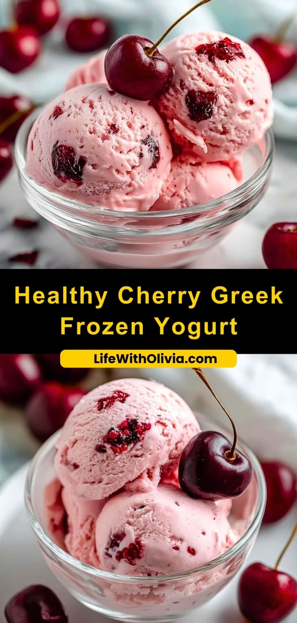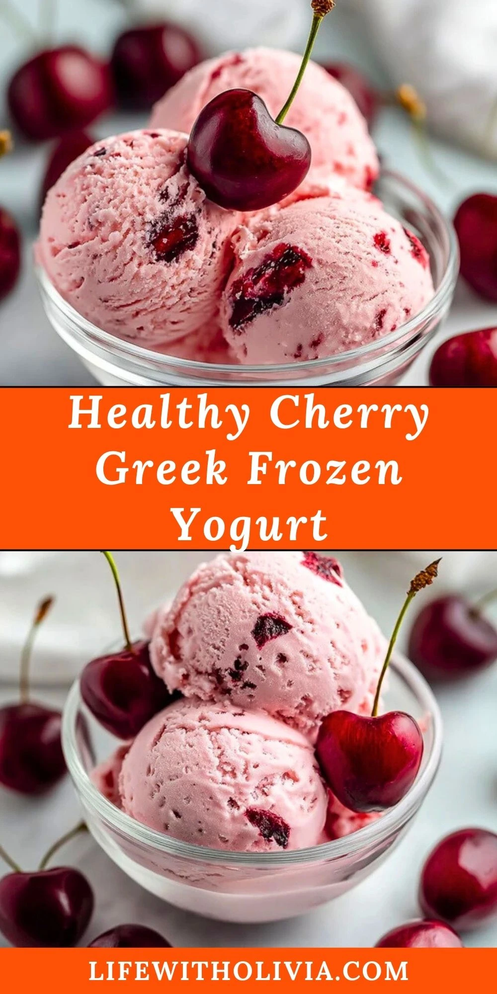 This frozen yogurt is best served slightly softened for the creamiest texture. After taking it out of the freezer, let it sit for a few minutes at room temperature before scooping. It pairs beautifully with fresh cherries, a sprinkle of granola, or a few shavings of dark chocolate.
