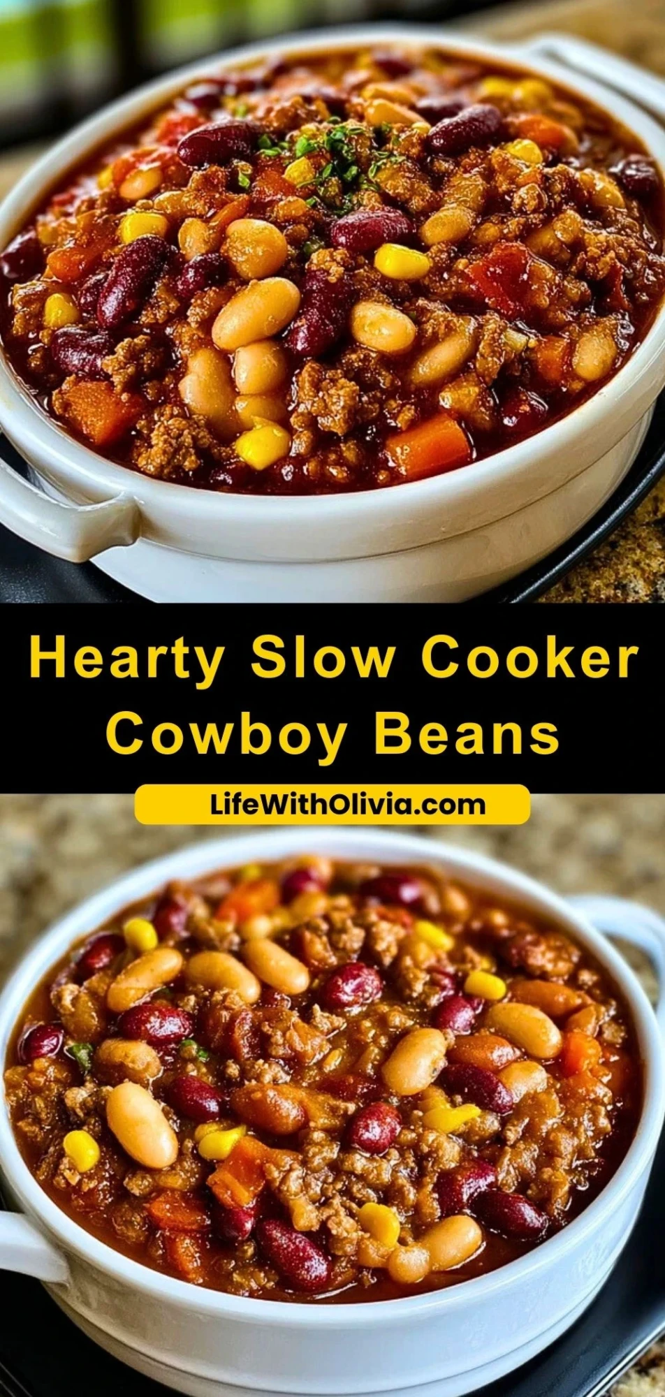 Keywords: cowboy beans, slow cooker, hearty beans, crockpot dinner